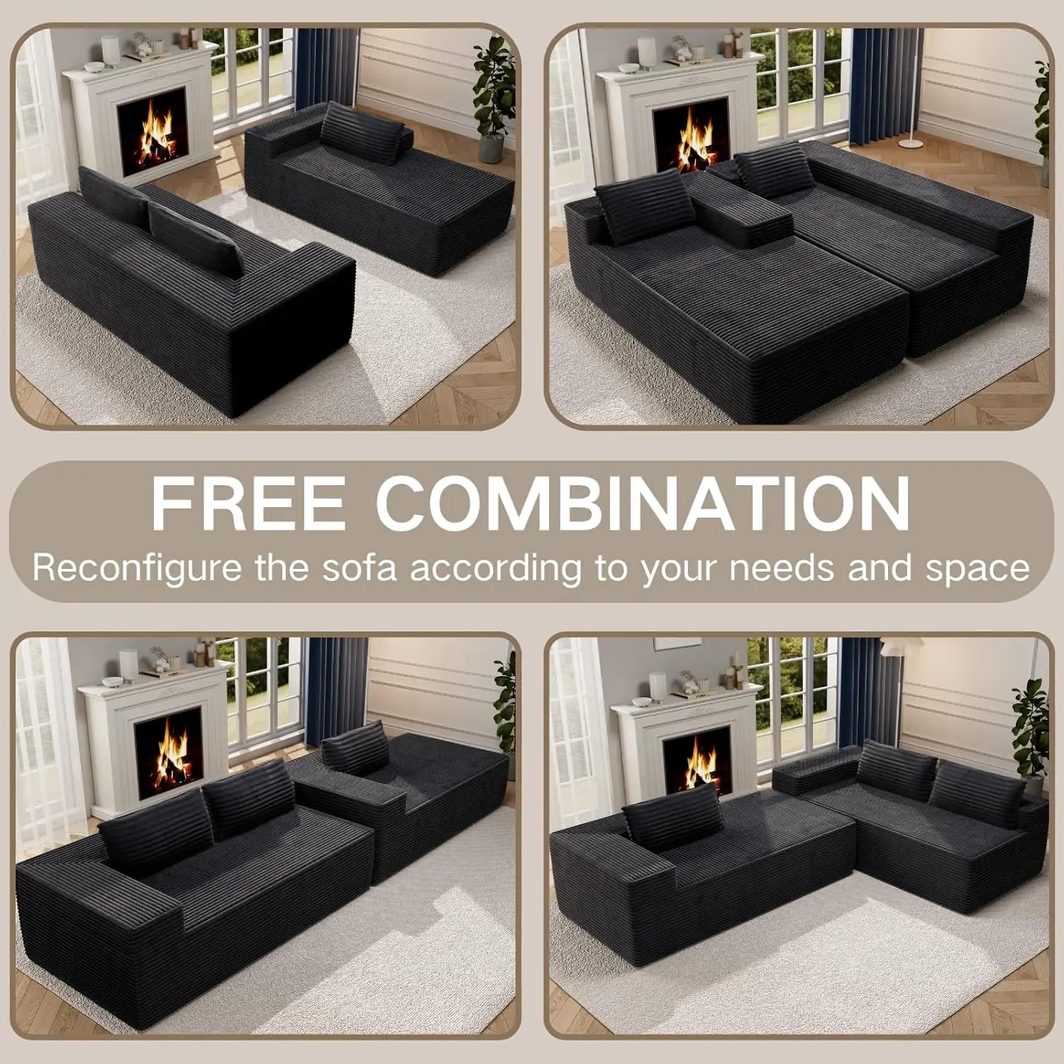 Sumptuous Corduroy Comfort - Wrapped in premium, breathable corduroy fabric, this cloud modular sectional sofa offers a uniquely soft and inviting feel. The elegant ribbed texture adds a touch of visual warmth to your room while providing a luxuriously comfortable seating experience. That is both smooth and durable
