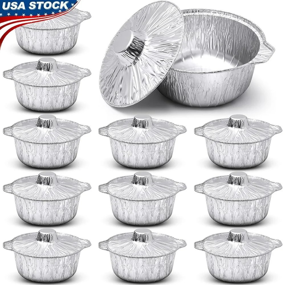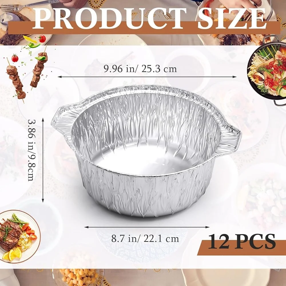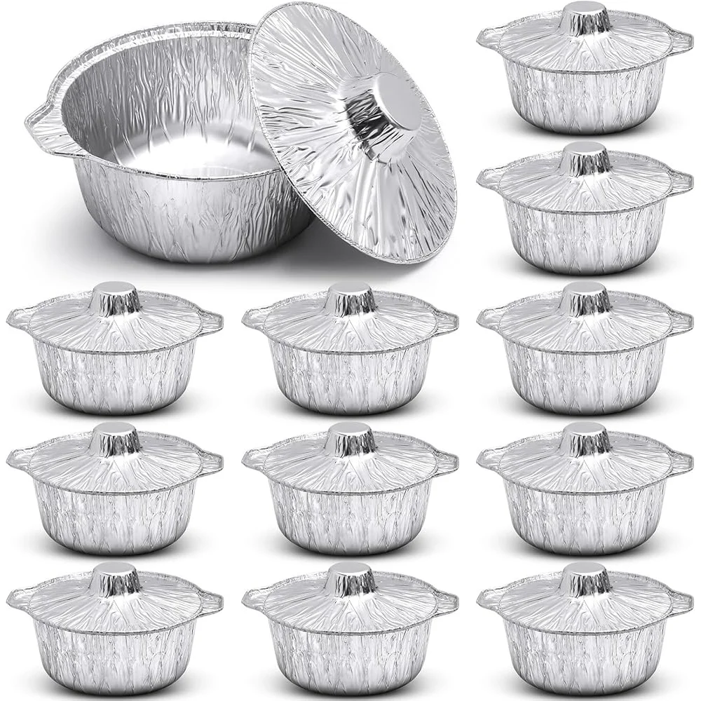 Abundant Inclusion in the Package: the package includes 12 disposable aluminum pots accompanied by coordinating lids; The comprehensive set of 12 pots means you'll have ample containers for various dishes or even for large scale cooking like house parties or festive celebrations; Each pot measures approximately 10 x 8. 7 x 3. 9 inches and with a capacity of 74. Disposable Yet Durable: our food containers are a useful tool for those who want an easily cooking experience; With their disposable feature, they offer convenience, especially for small kitchens or outdoor cooking; Simply use and dispose of, no tiresome cleanup necessary
