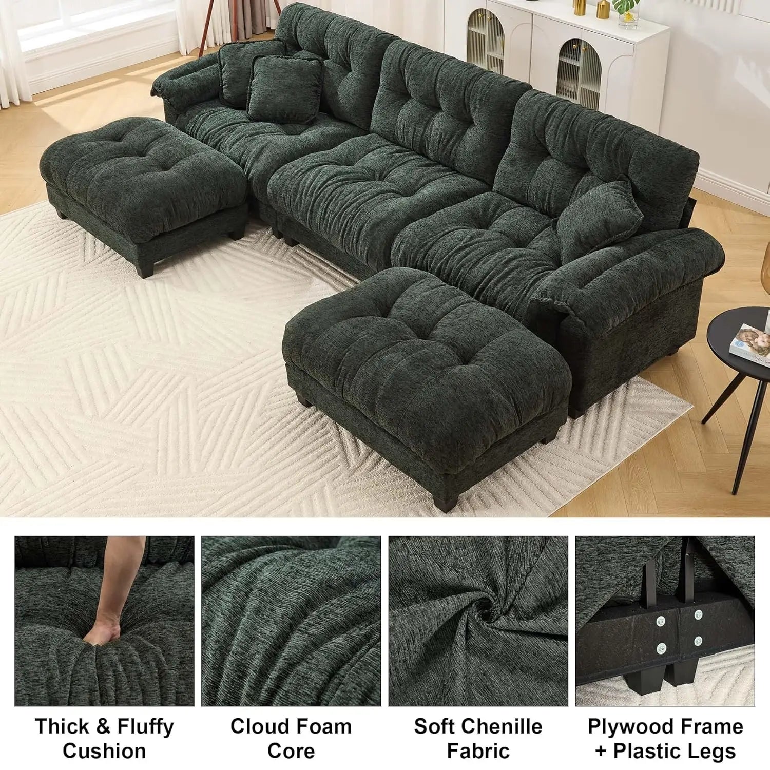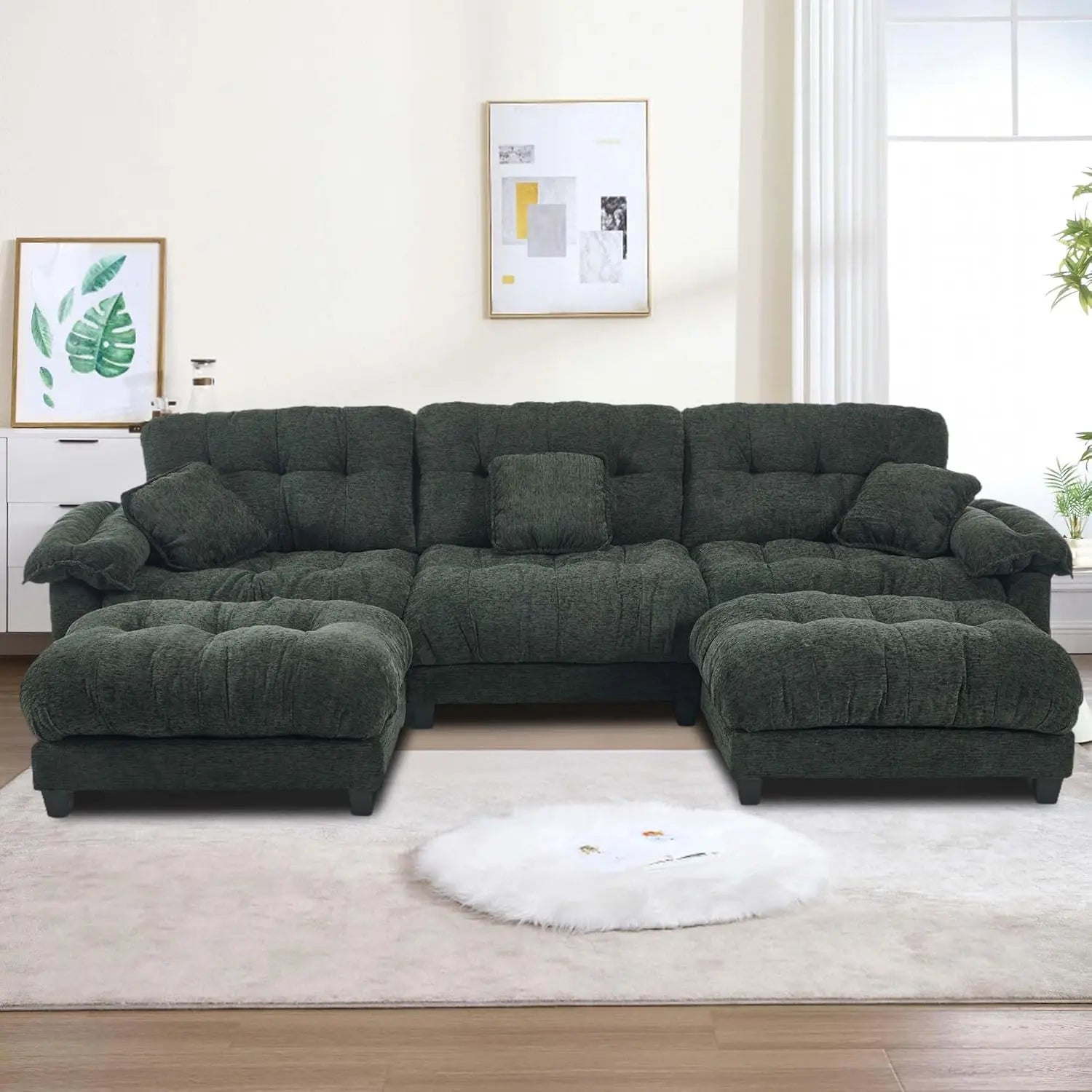 Modular U Shaped Sectional Sofa Chenille Cloud Couch