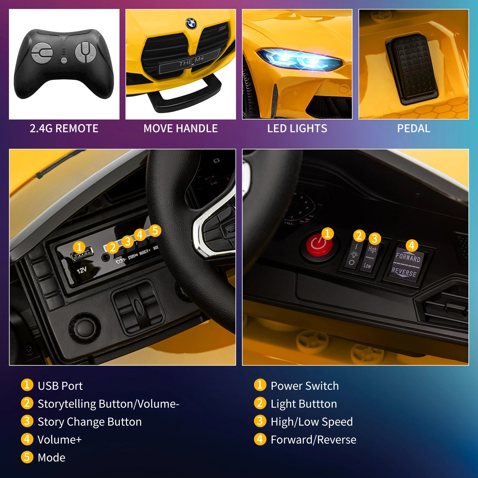 12V Electric Ride On Car w/RC,Licensed by BMW M4 Toddler Toy Vehicle for Kid with Suspension System,3 Speeds,Bluetooth,LED Light