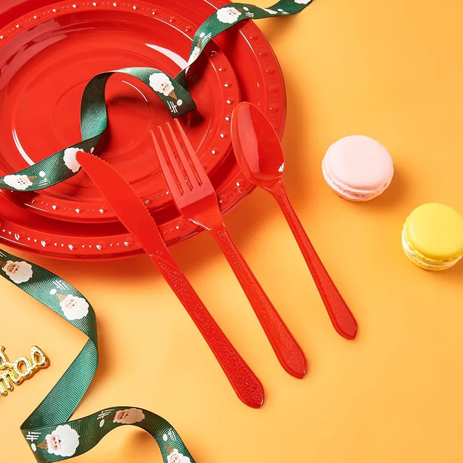 175 PCS Red Plastic Dinnerware Set for Outdoor Events and Gatherings Includes 50 Plates 25 Cups 25 Napkins 25 Cutlery Spoons Fo