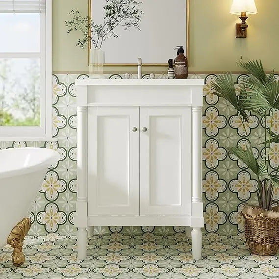 24 Inch Bathroom Vanity with Single Sink Combo Set, Modern Bathroom Storage Cabinet with Double Soft Closing Doors, Solid Wood F