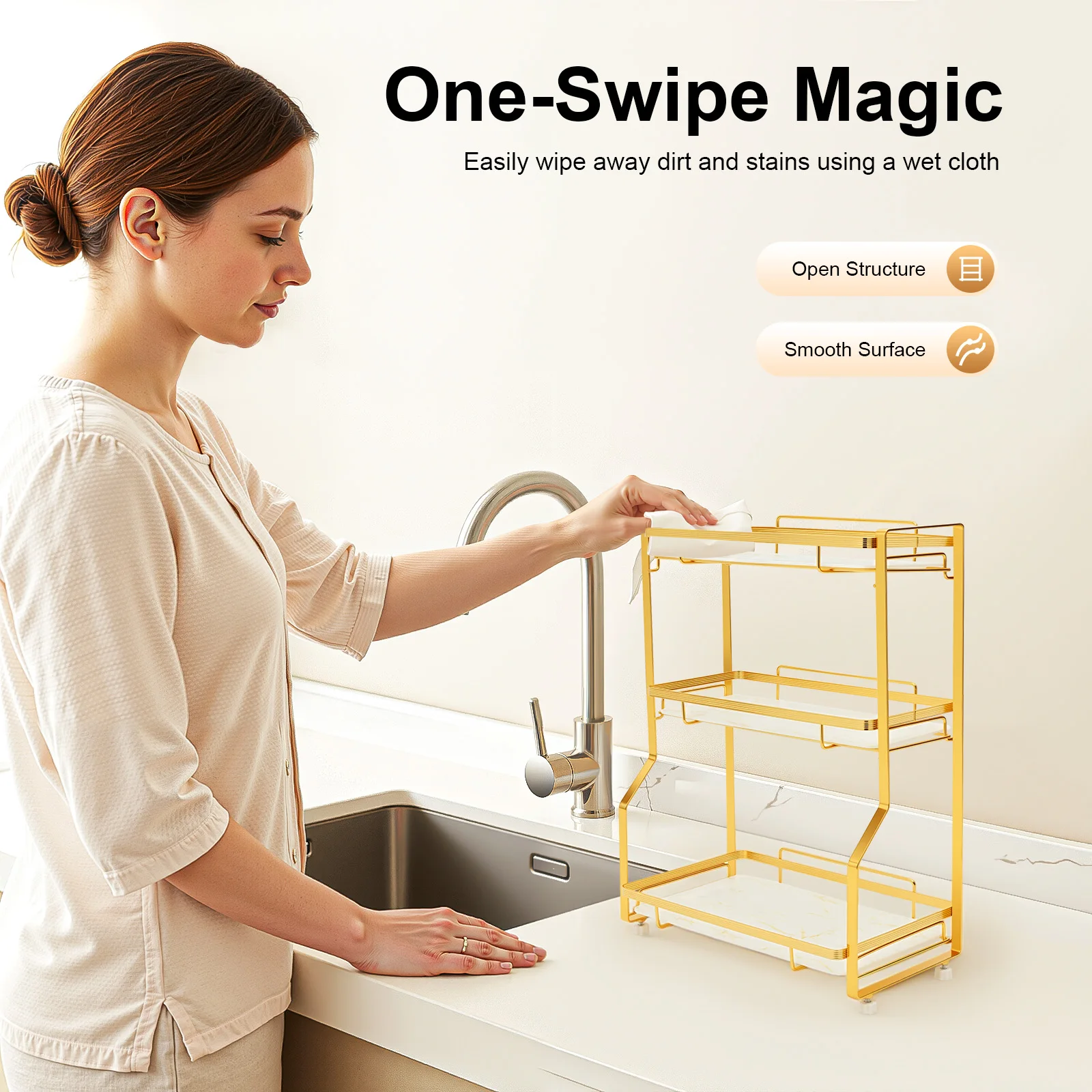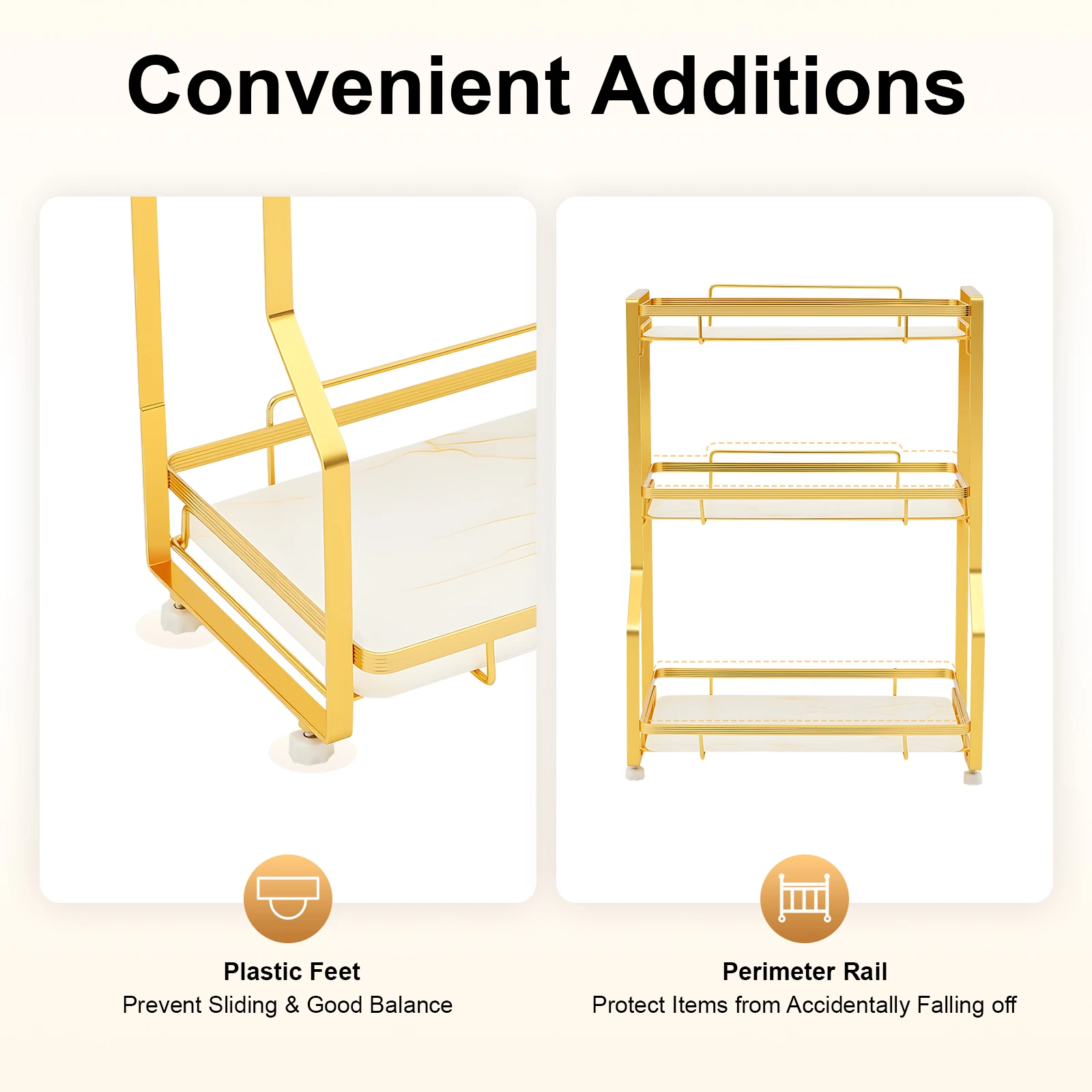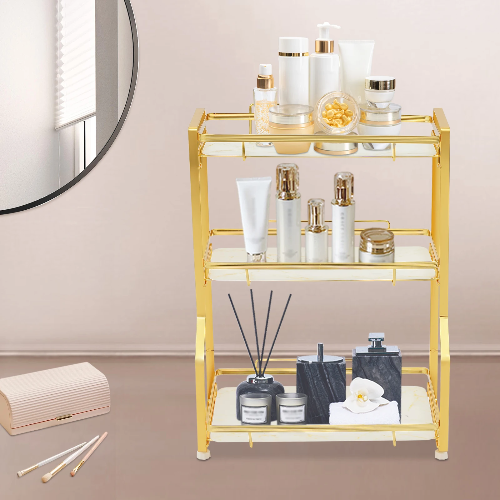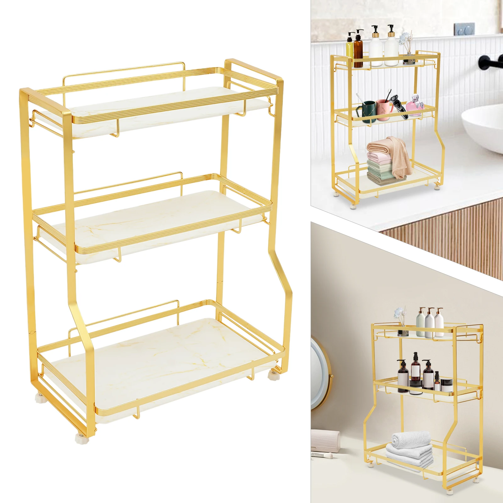 Decorative Appearance: Gold-colored shelves and marble decorative panels give it a sophisticated, sleek and minimalist look, resulting in a modern luxury style. It is not only a practical organizer but also a unique decoration that can provide you with a wonderful washing time.