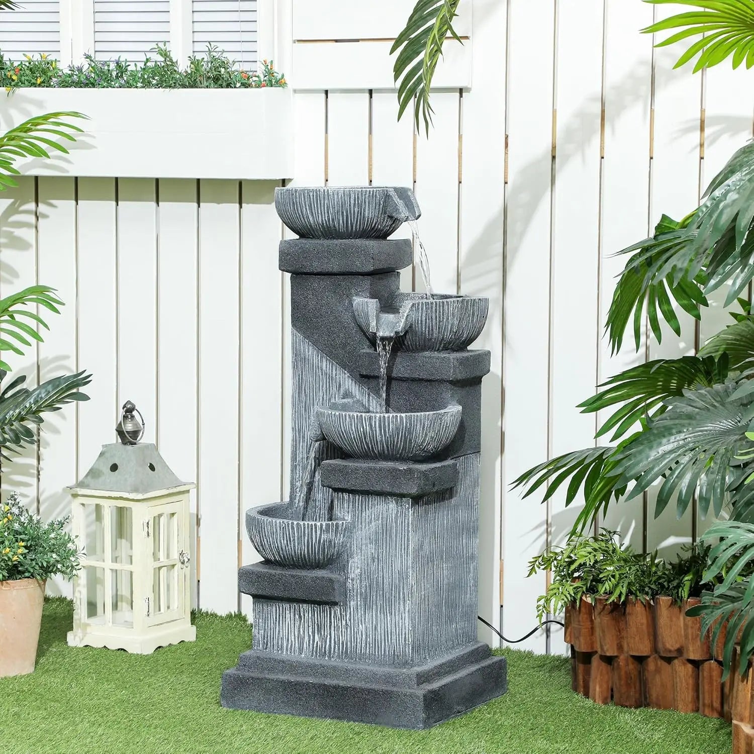 Elevate your outdoor space with Outsunny's four-tier resin waterfall fountain, where cascading water and gentle LED glow create a tranquil ambiance.