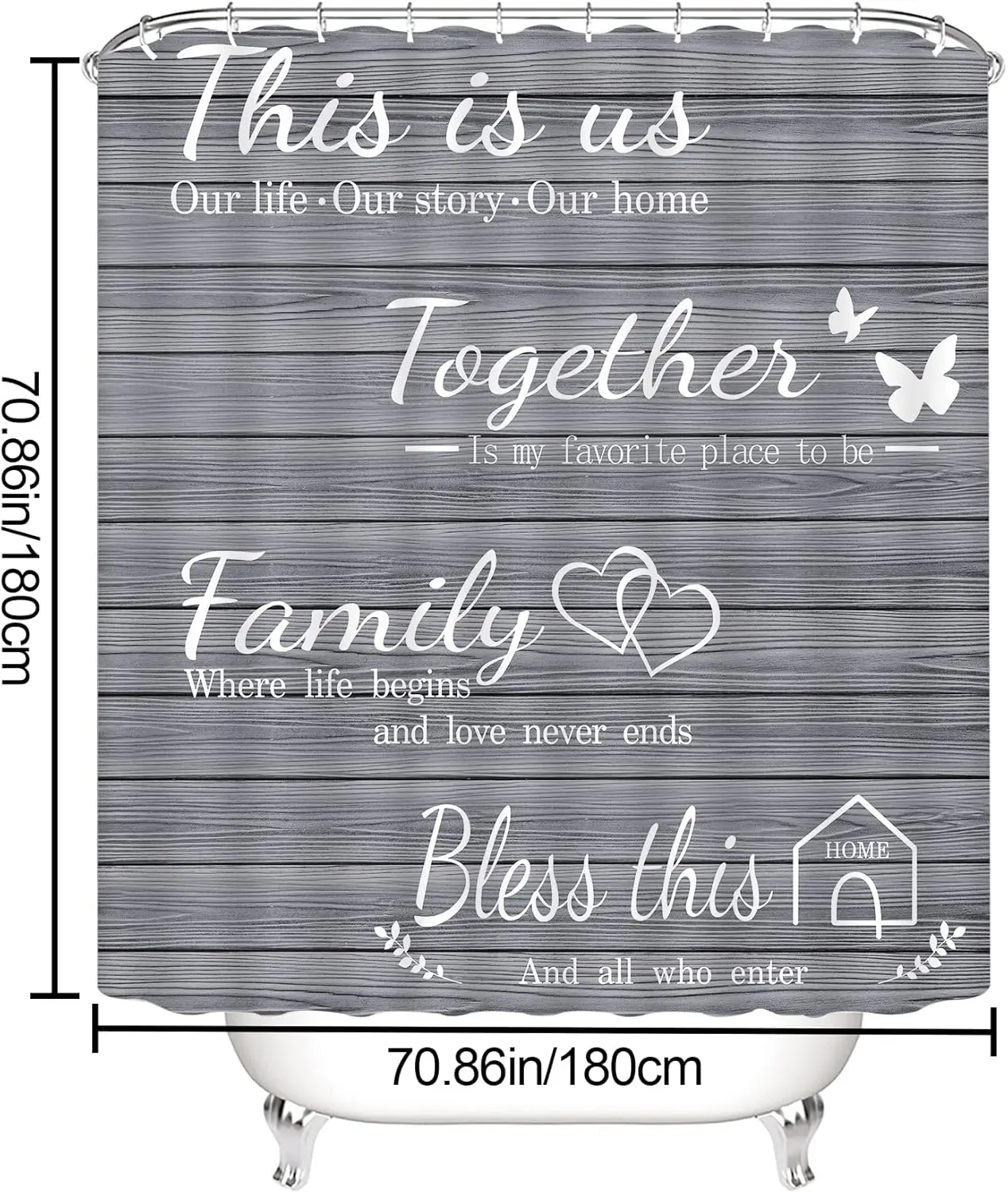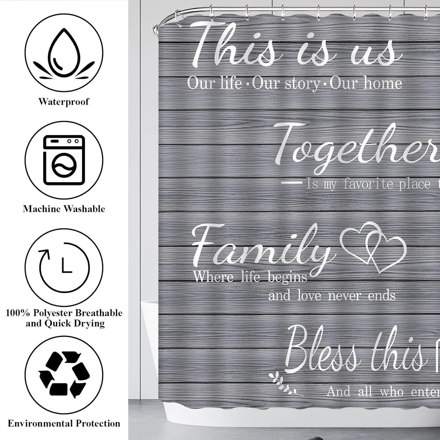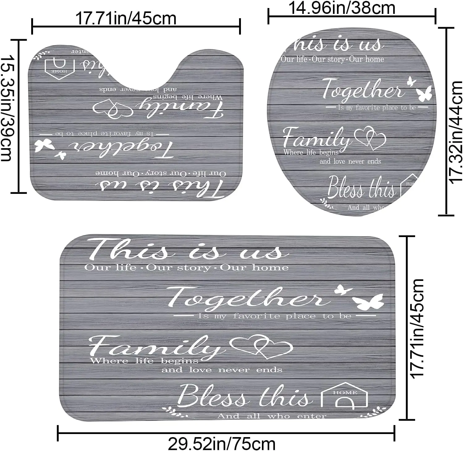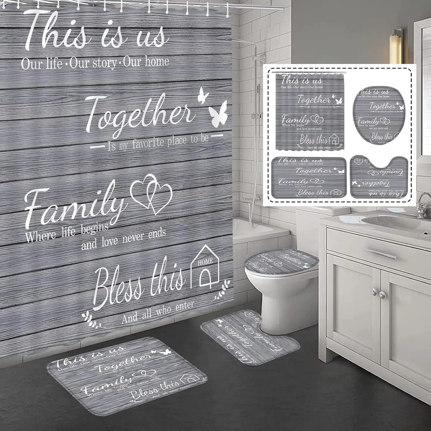 Enhance your bathroom with this comprehensive 4-piece set designed for comfort and style. The waterproof shower curtain is made from durable polyester, ensuring long-lasting use while keeping water contained. It features a modern grey home theme pattern that adds a fresh look to any space. The set includes non-slip bath mats and rugs crafted from high-quality flannel with skid-resistant backing, providing safety and stability during showers. A matching toilet lid cover completes the coordinated decor. Key Features: - Material: Shower curtain is 100% polyester for waterproof durability; rugs are made of soft flannel with non-slip backing. - High-Definition Printing: Advanced printing technology delivers clear marble patterns that resist fading and maintain vibrancy over time. - Sizes: Shower curtain measures 70.08" L x 68.9" W, suitable for most bathrooms; bath rug is 31.5" L x 19.69" W; toilet cover is 16.54" L x 14.57" W; U-shaped rug is 20.08" L x 20.08" W. - Easy Installation: Comes with 12 hooks for quick setup without tools, allowing you to decorate bathrooms, walls, or other spaces effortlessly. - Packaging and Care: Vacuum-packed to protect during shipping—unpack and lightly dampen to remove wrinkles before drying naturally within minutes. This versatile set combines functionality with aesthetic appeal, making it ideal for home upgrades or gifts. Enjoy a pleasant showering experience with enhanced safety and a refreshed bathroom ambiance.