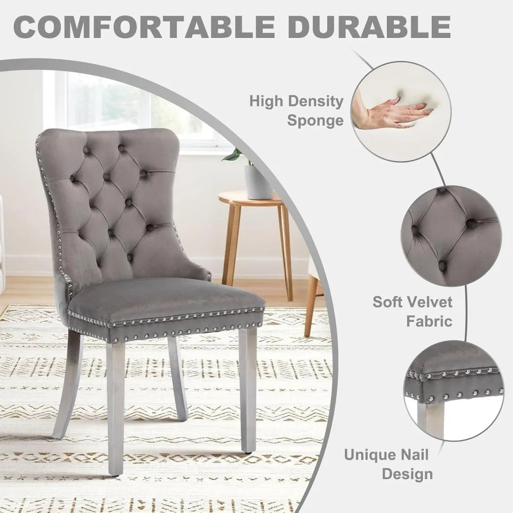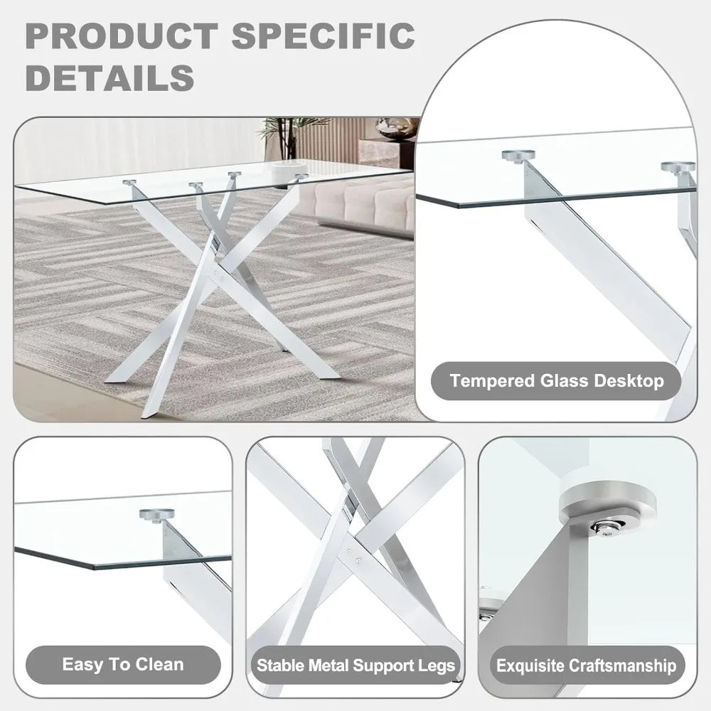 Space-saving design for 4-person dining room set - 51.18" L x 29.53" W rectangular glass table fits small apartments and indoor dining spaces of any size; 29.92" tabletop height aligns with the seat height of the velvet dining chairs. Glass tabletop reflects light to visually expand space. Durable glass tabletop and stable frame - The rectangular dining table features a durable tempered glass tabletop with a maximum weight capacity of 500 lbs. Four fixed metal frames provide structural stability and prevent wobbling. Velvet chairs with 4 stainless steel legs have a maximum weight capacity of 250 lbs per chair, suitable for most people. Easy to assemble and maintain - The kitchen set is simple and quick to assemble. The dining table and chairs come with detailed installation instructions and tools. The glass tabletop is stain-resistant; whether it's spilled red wine or food residue, a damp cloth will clean it up without leaving any marks. The dining chairs are made of velvet, and we recommend cleaning them with paper towels or wet wipes. Multi-scenario use and all-day comfort - With a sleek, modern design, this dining room set adapts to any type and style of dining space and seamlessly integrates into any interior decor. The dining chairs feature high-quality velvet fabric and high-density foam padding, offering both aesthetic appeal and comfort for an all-day enjoyable seating experience. Excellent protection and service - Dining table and chairs are individually packaged with extra protection to ensure that the products arrive intact. If you encounter any problems, please contact us in time, and we will provide you with high-quality services.