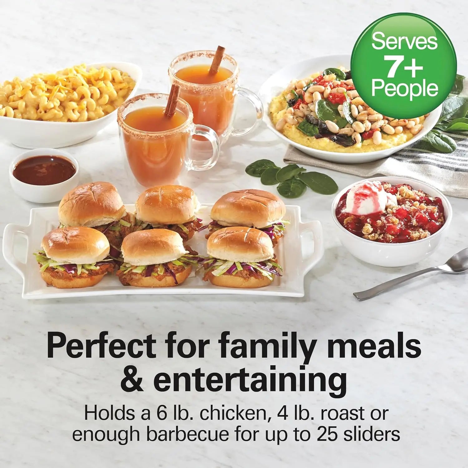 - 6-quart capacity serves 7+ people, fits a whole 6 lb chicken, a 4 lb roast, or up to 25 sliders; ideal for potlucks, buffet setups, and weekly meal prep.