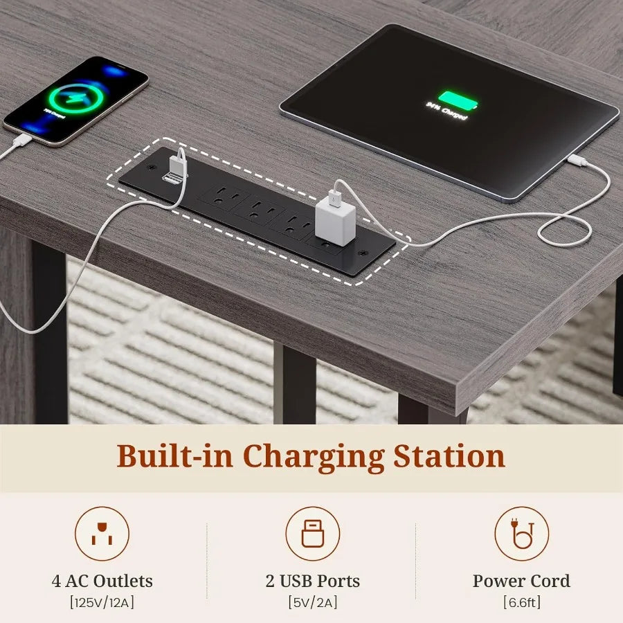 - Built-in power outlets keep your devices charged and cables tidy for a clutter-free desk surface, plus surge protection and accessible USB charging options.