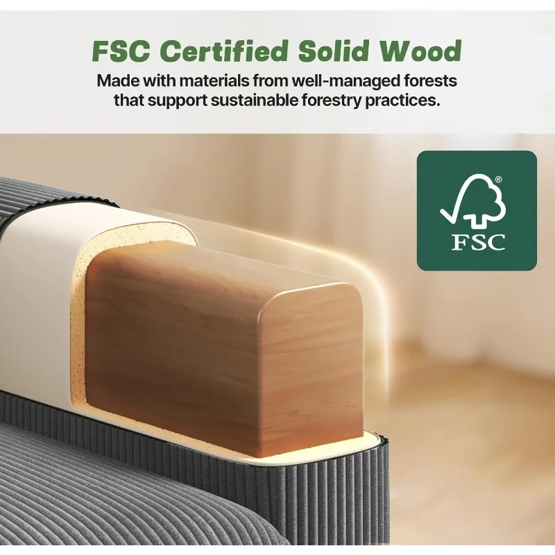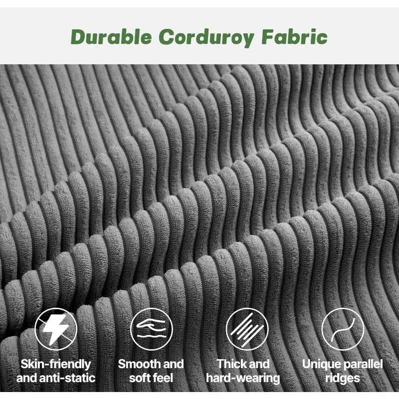 Durable Corduroy Fabric - This corduroy sofa couch has a unique pattern and texture, characterised by parallel ridges that give it a smooth and soft feel. The modern couch has a clear and rounded velvet-like surface, which adds to its luxurious appearance. Additionally, sectional couch is thick and wear-resistant, making it an excellent choice for those who demand comfort and durability