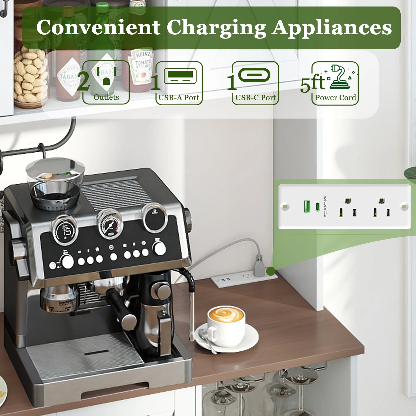 Charge Kitchen Pantry Cabinet With Charging Station and Sliding Doors