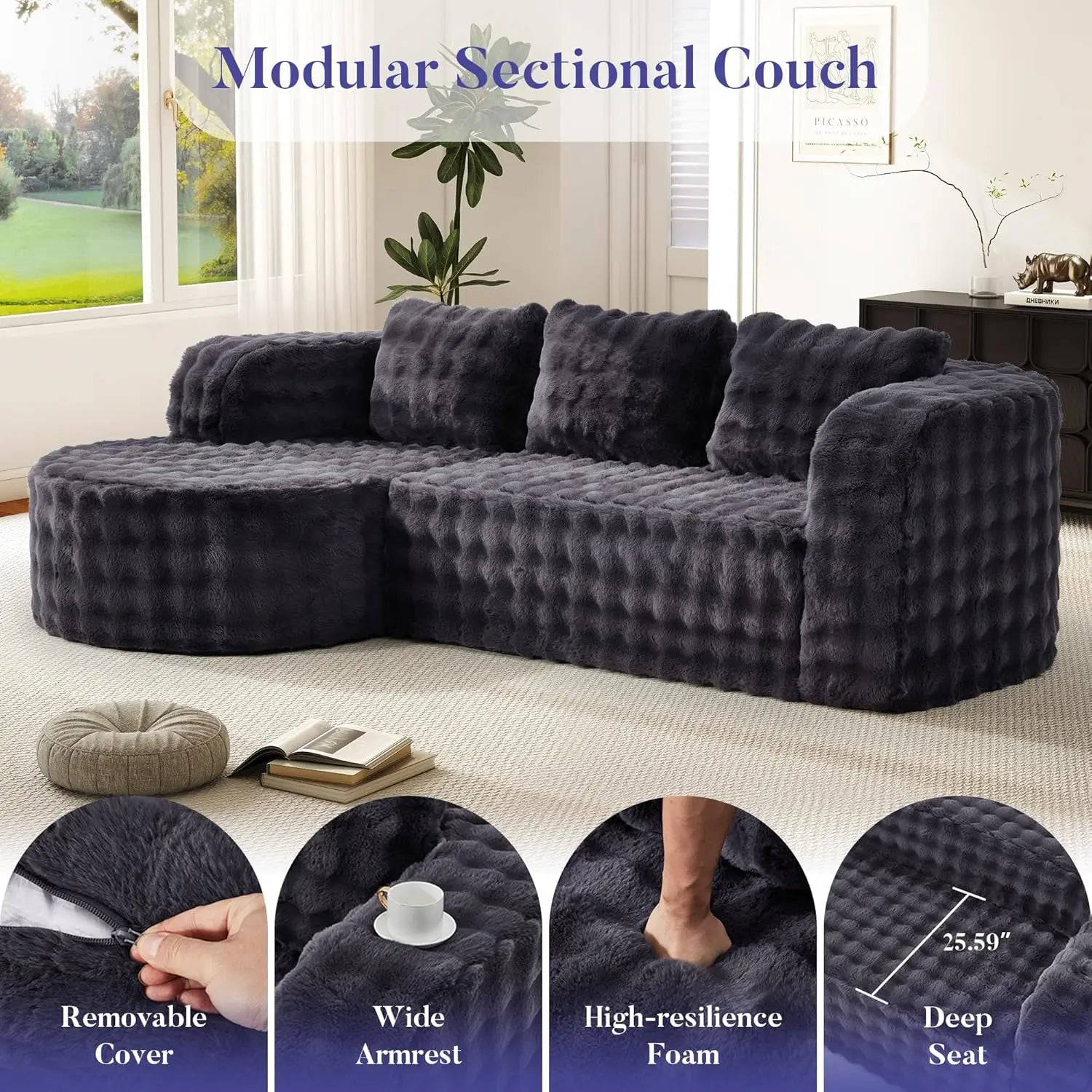 - Curved modular design with skin-friendly bubble fabric and high-resilience memory foam cushions that hold shape for durable, cloud-soft support, plus a removable, machine-washable cover.