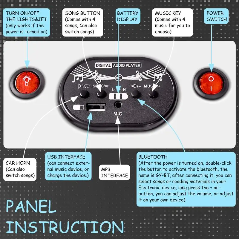 ·【UNIQUE SPRAY SYSTEM】Our electric toddler car has 2 sprayers with LED lights, which can emit red blue fog flow continuously after being filled with water, bringing your kids with an excellent visual experience and making night driving more dazzling.