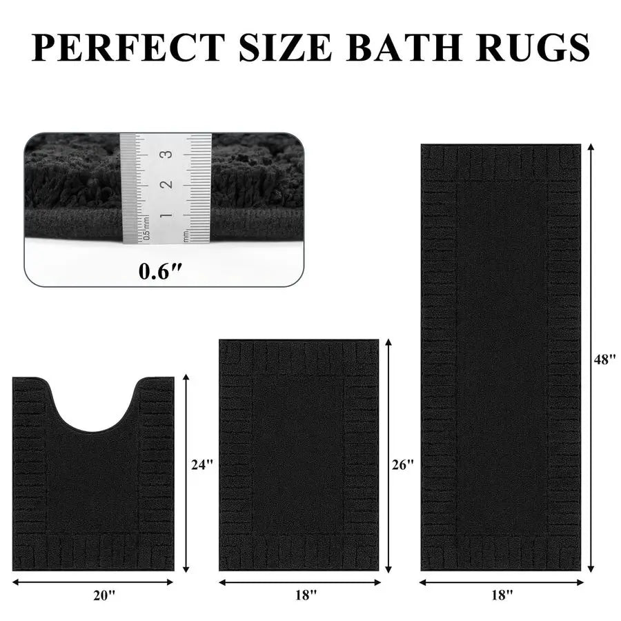 Bathroom Rugs Sets 3 Piece Bathroom Shower Rugs with UShaped Contour Toilet Mat Absorbent Microfiber Plush Bath Mats Non Slip Ba