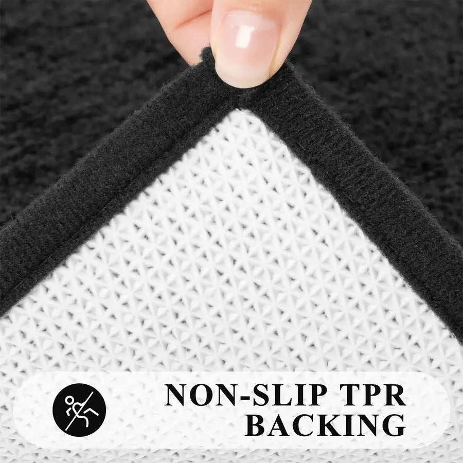 Non Slip Bath Mat Set The bottom of shower bath rugs feature strong Adhesion TPR material to prevent shifting and skidding, keep it in place on your floors and protect your family. Please place the nonskid shower rug on dry smooth floor only