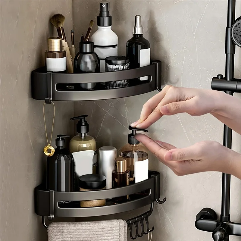 Corner Shower Caddy Suction Cup Shower Shelf Corner No Drilling Bathroom Shower Organizer Storage Rack Adhesive with Towel Bar