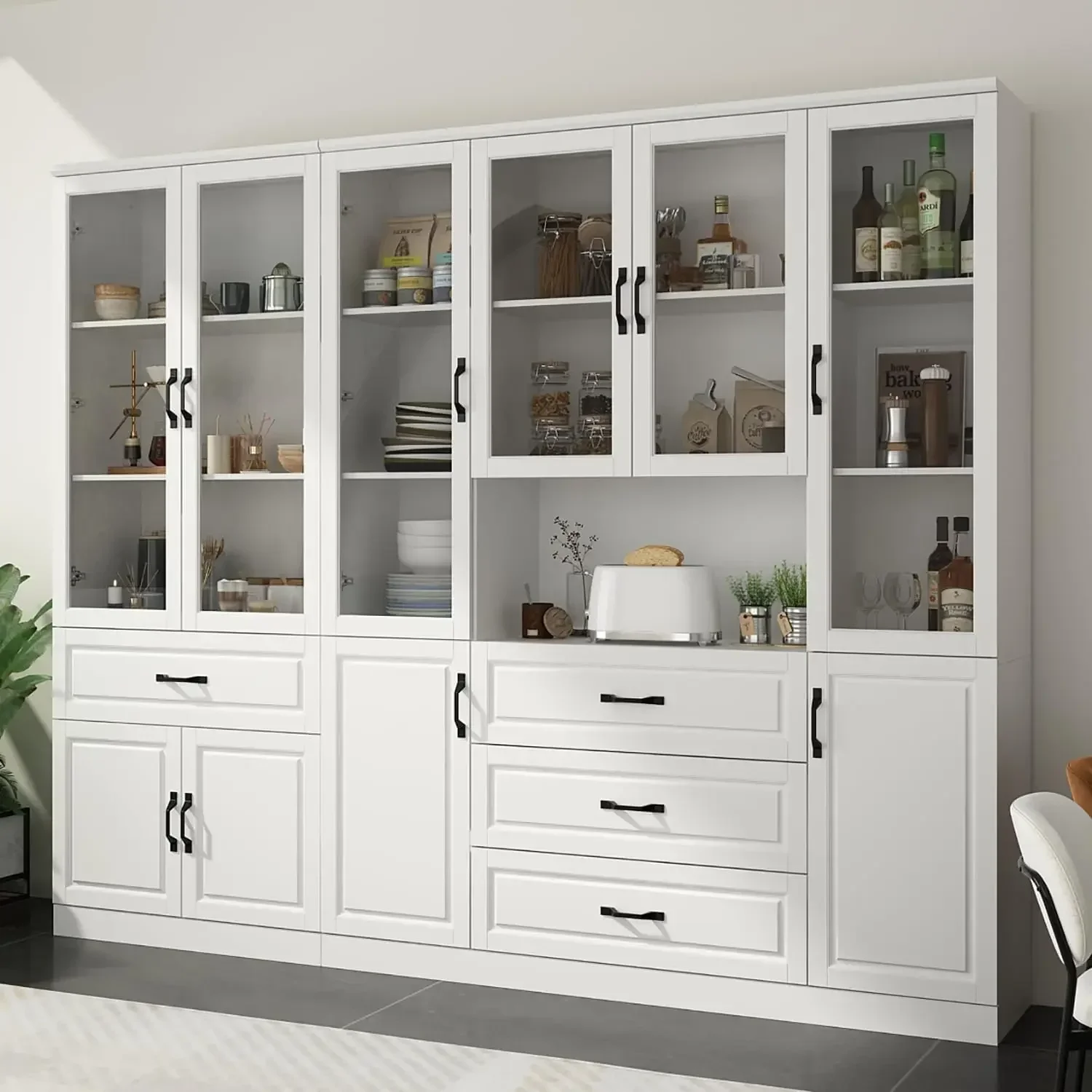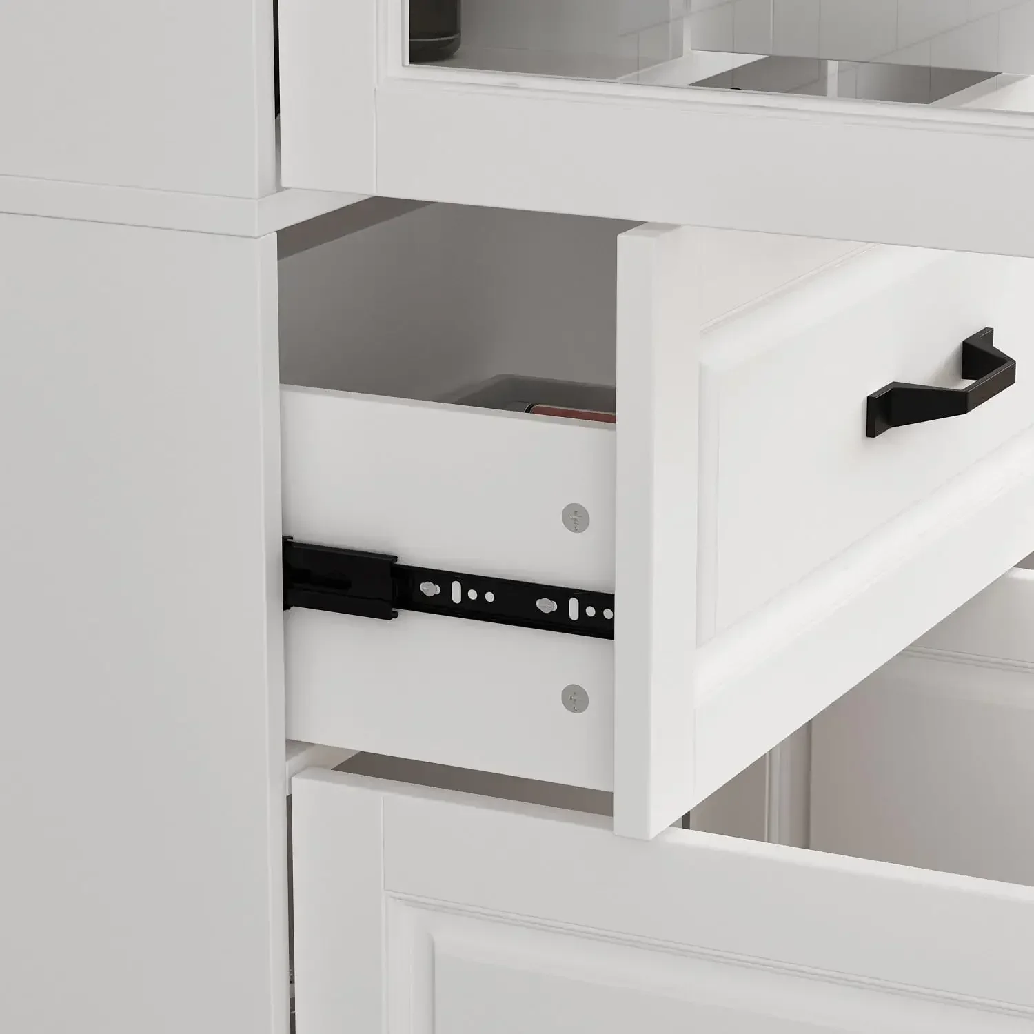 Tall Bookshelf with Glass Doors & Drawers, 2 Piece Large Storage Cabinet Set, Home Office Bookcase with Doors, Glass Display Cabinet for Living Room, White (94.5" W x 15.7" D x 78.9" H)
