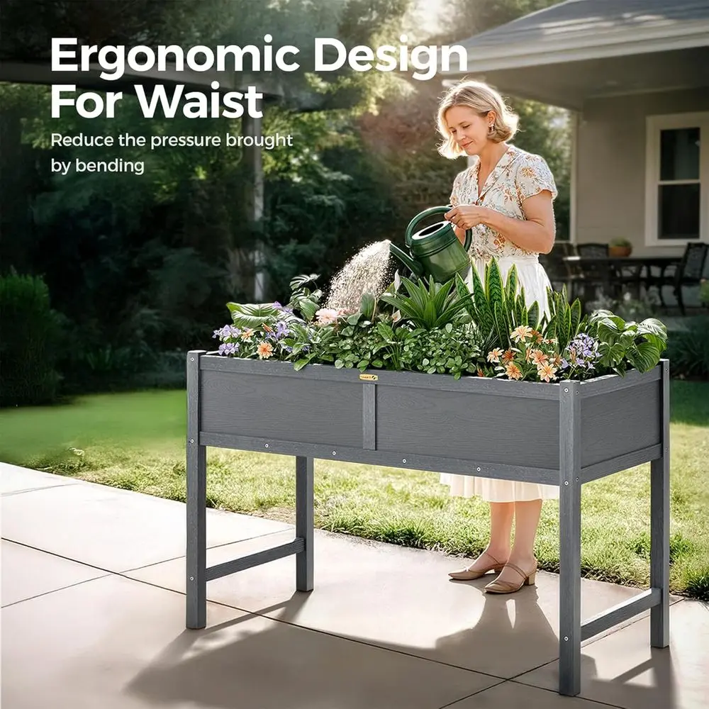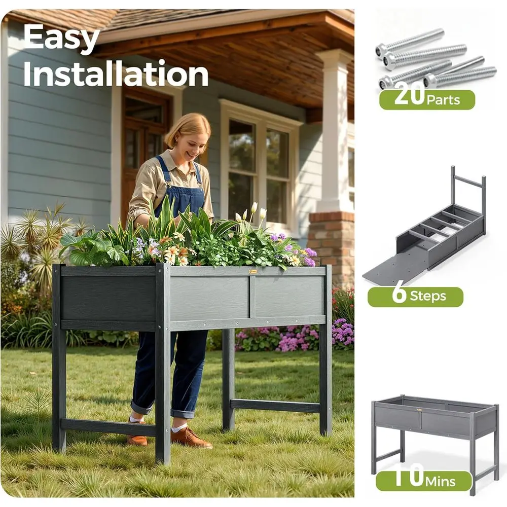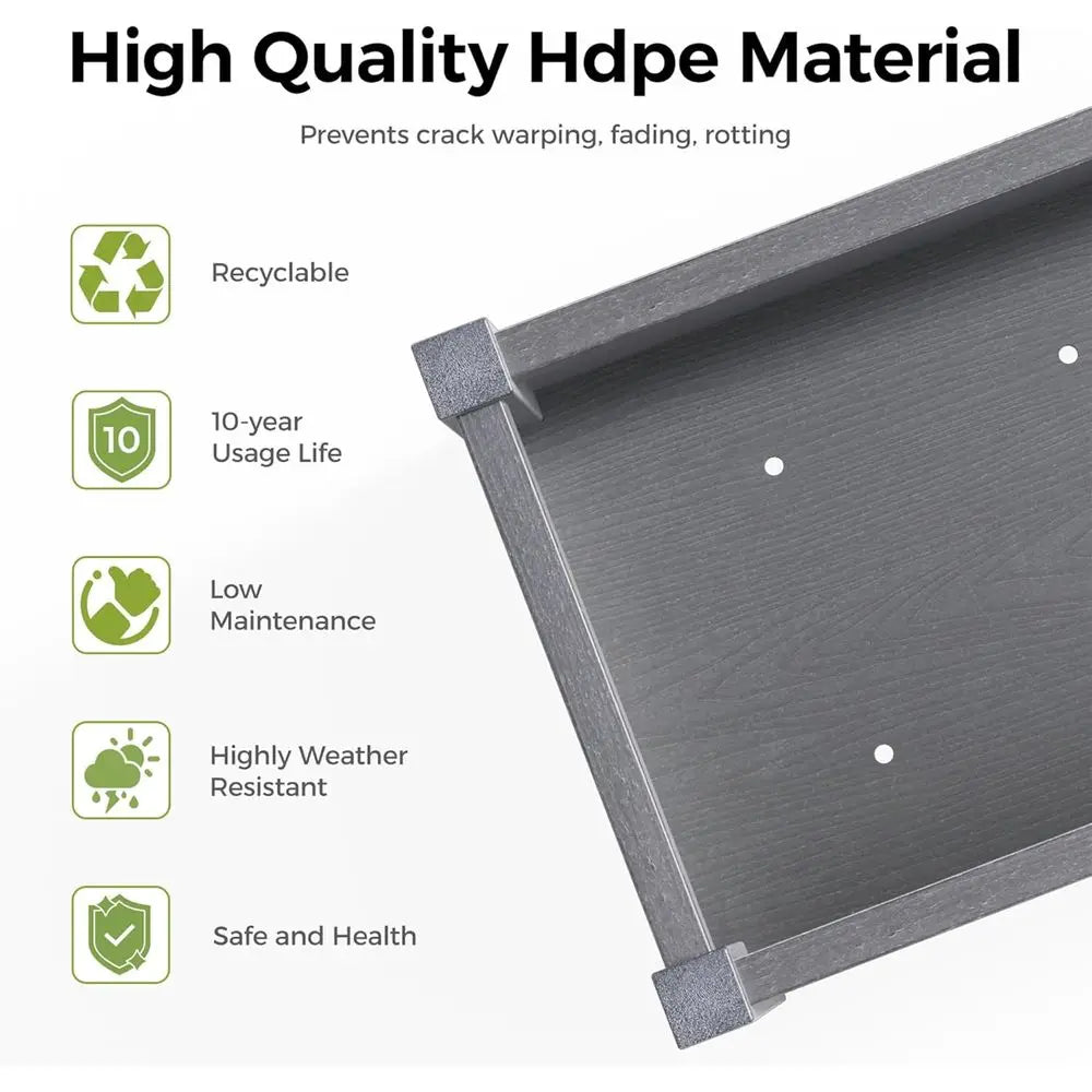 Crafted from premium high-density polyethylene (HDPE), this durable raised garden bed is designed to withstand the test of time. It is crack-resistant, rust-proof, and UV-stable, ensuring that it won't rot, fade, or peel like wood or metal, making it ideal for long-term outdoor use.
