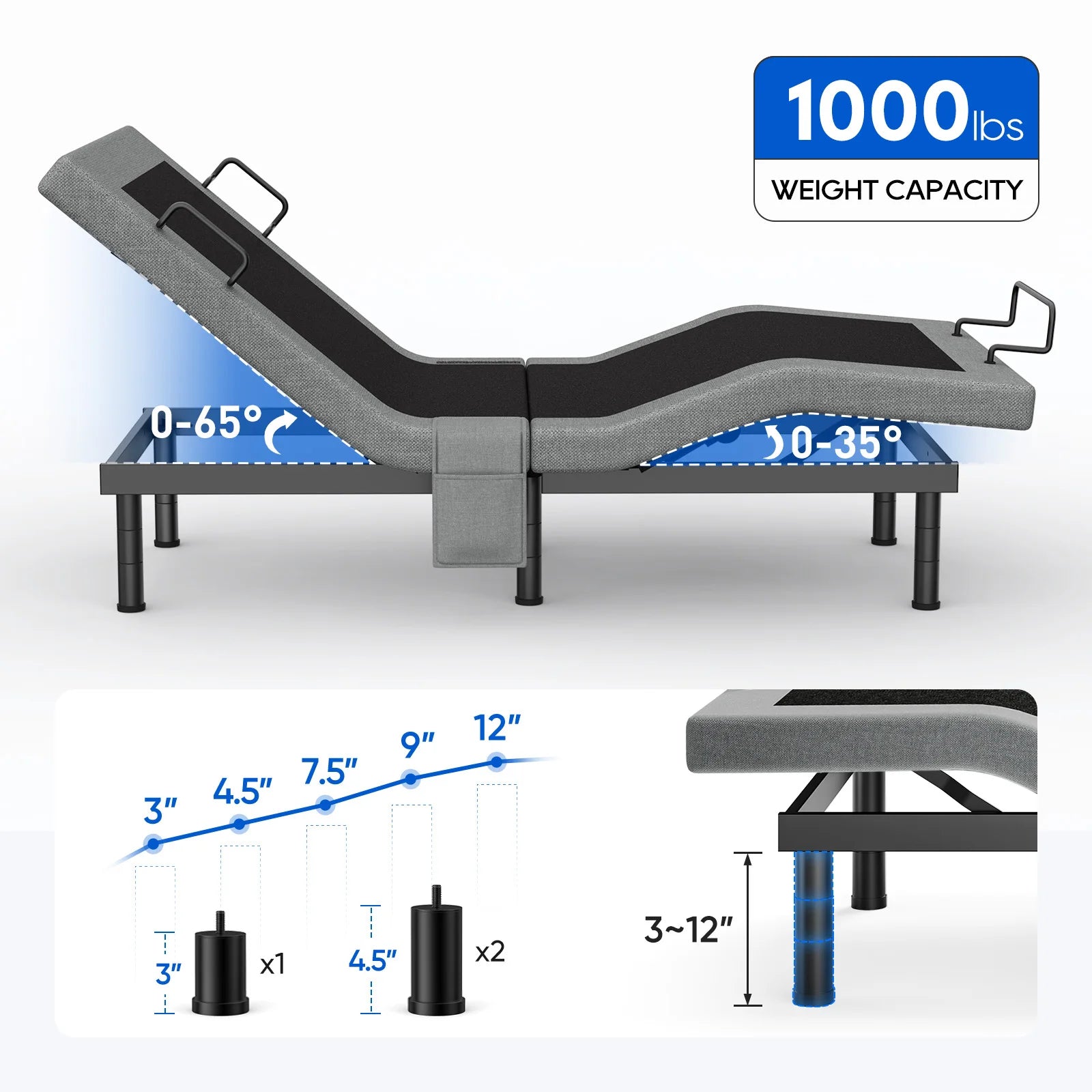 - Adjustable Comfort: Dual quiet motors adjust head up to 65° and foot up to 35°, with anti-snore and Zero Gravity preset positions.