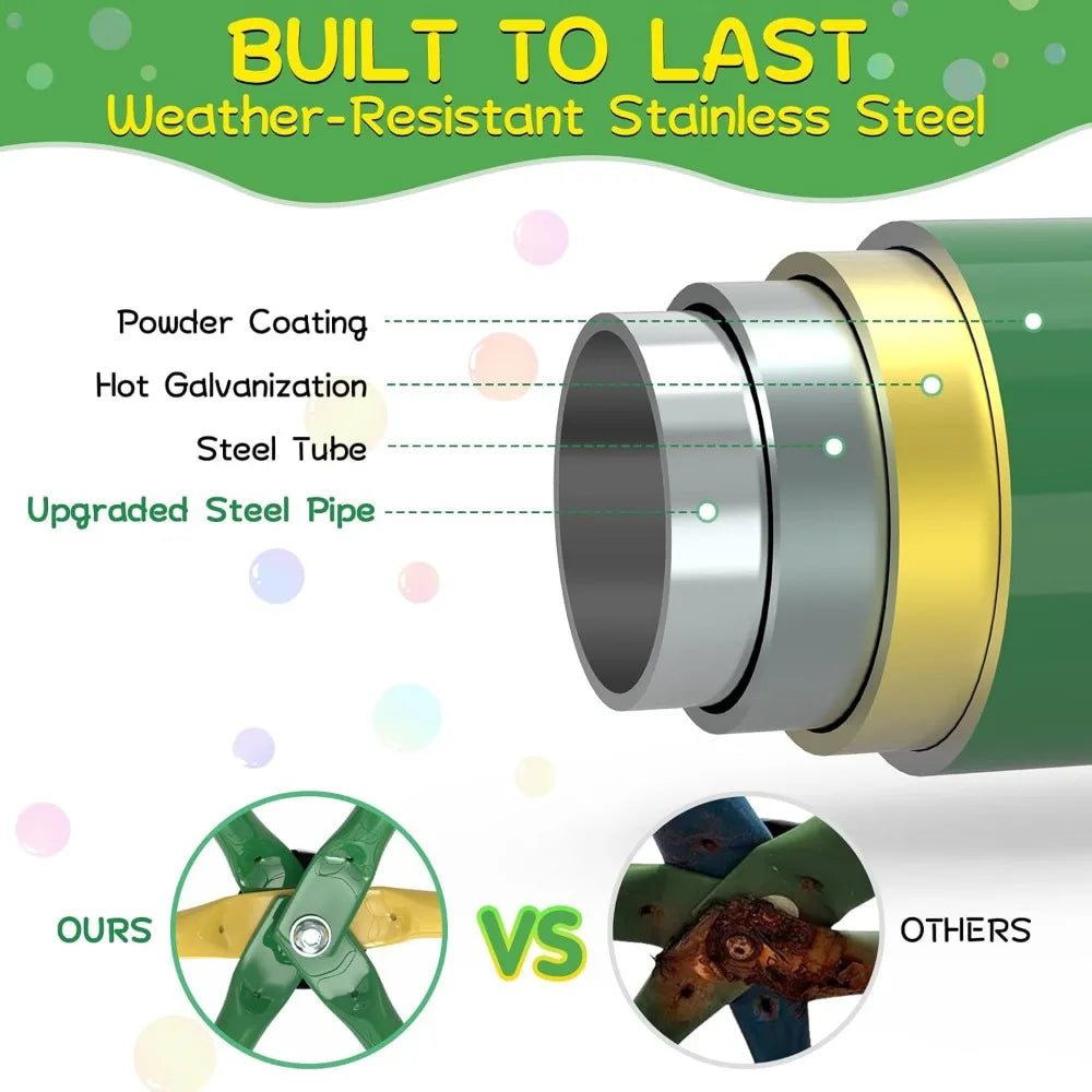 - Mom Wants To Be Safe - This geometric climbing dome is made of both rust-resistant and weather-resistant galvanized steel construction, great for outdoor use. GIKPAL backyard climber is rust-proof and can prevent breakage, offering a long service life. Its surface is smooth without sharp points, edges, or corners, which reduces the risk of scratching or hurting others.