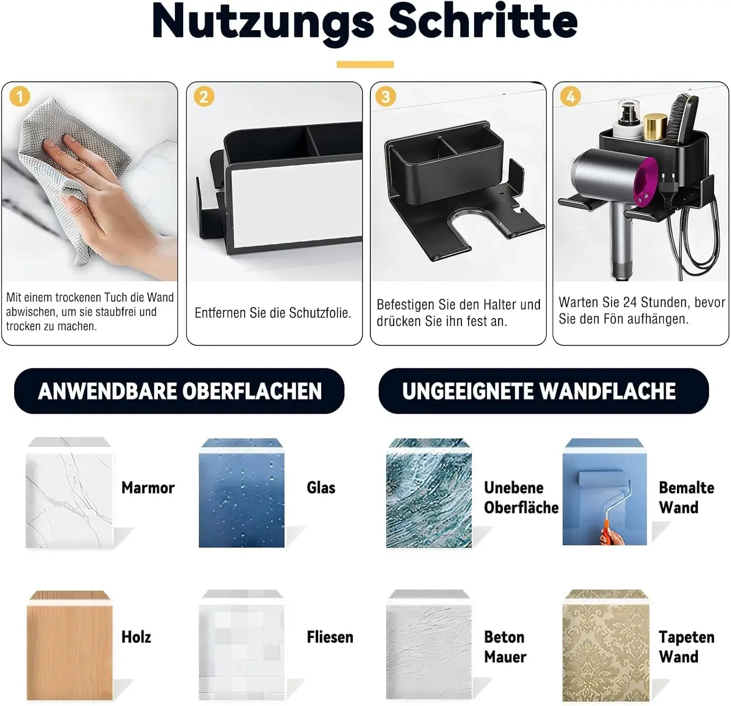 Hair Dryer Holder No Drill Wall Mount Self-Adhesive With Plug Holder Storage Organizer For Bathroom Hotel Barbershop