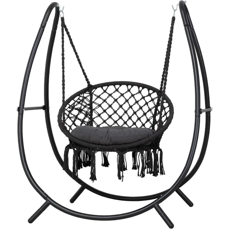 Hammock Swing with Stand Included, Outdoor Hanging Swing Chair with Stand and Removable Seat Cushion, Max 400 Lbs, Dark Grey