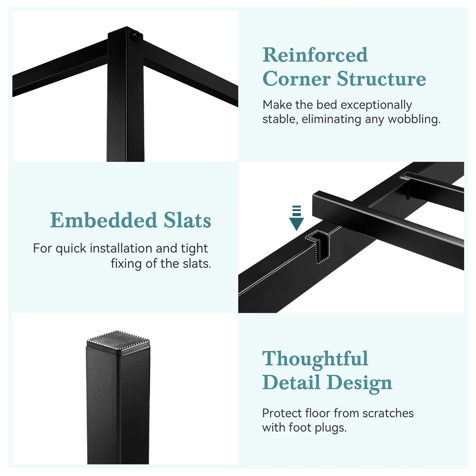 - Sturdy, all-metal construction delivers durable support and a stable, rock-free sleep, anchored by a reinforced four-corner frame that minimizes wobble.