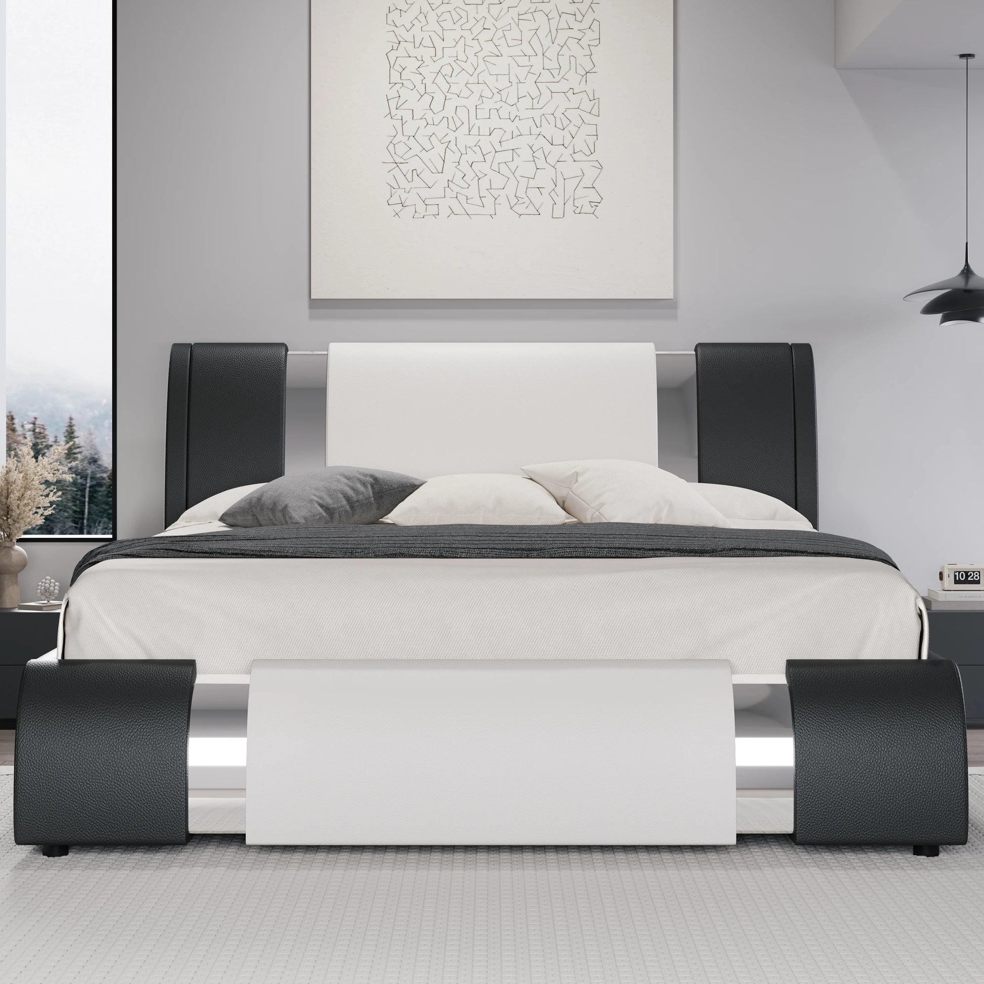 HOOMIC Modern Faux Leather Platform Bed Frame With Iron Accents
