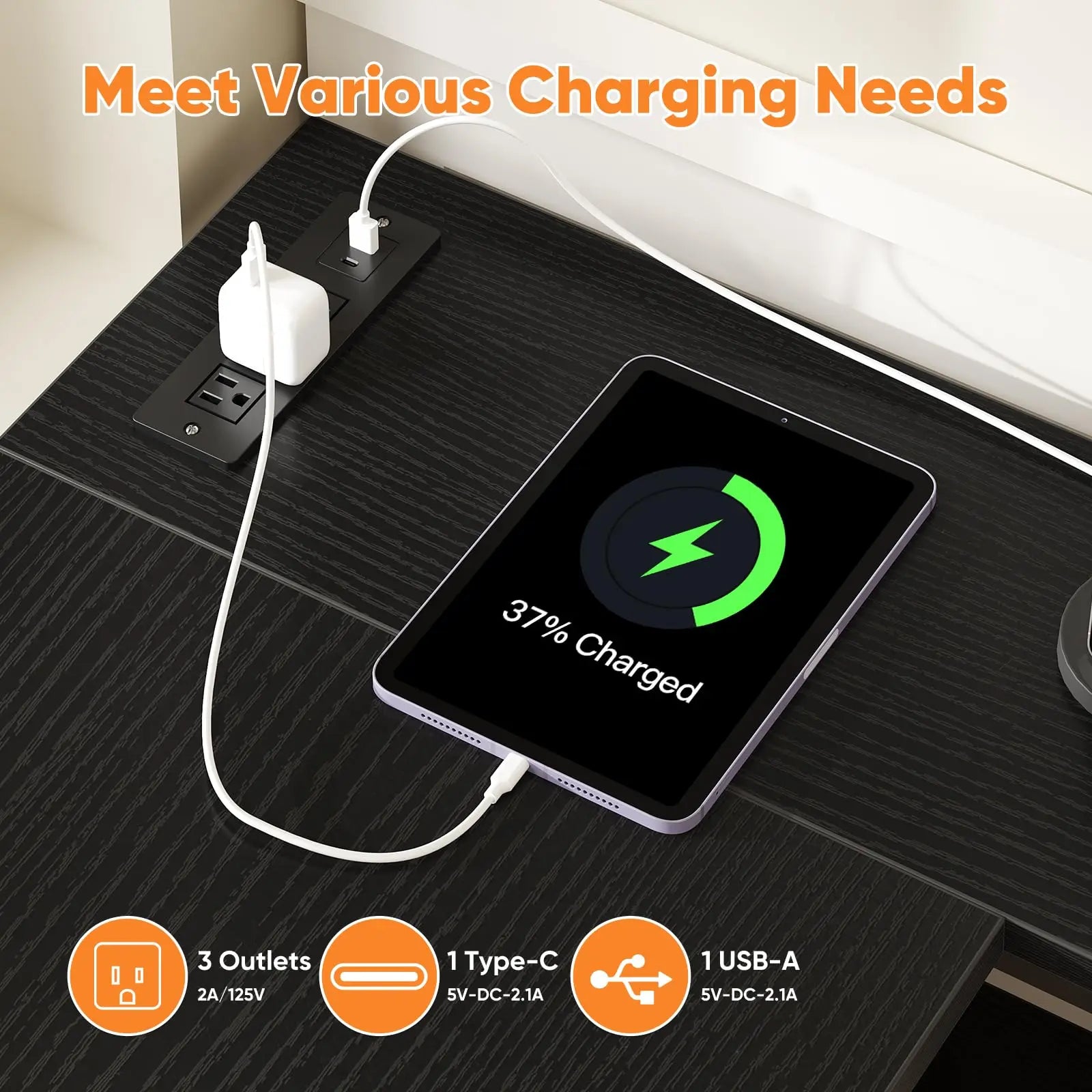 - Built-in charging station includes 3 outlets, 1 USB, and 1 Type-C port so your laptops, monitors, tablets, and phones stay powered without hunting for outlets, even during long study sessions.