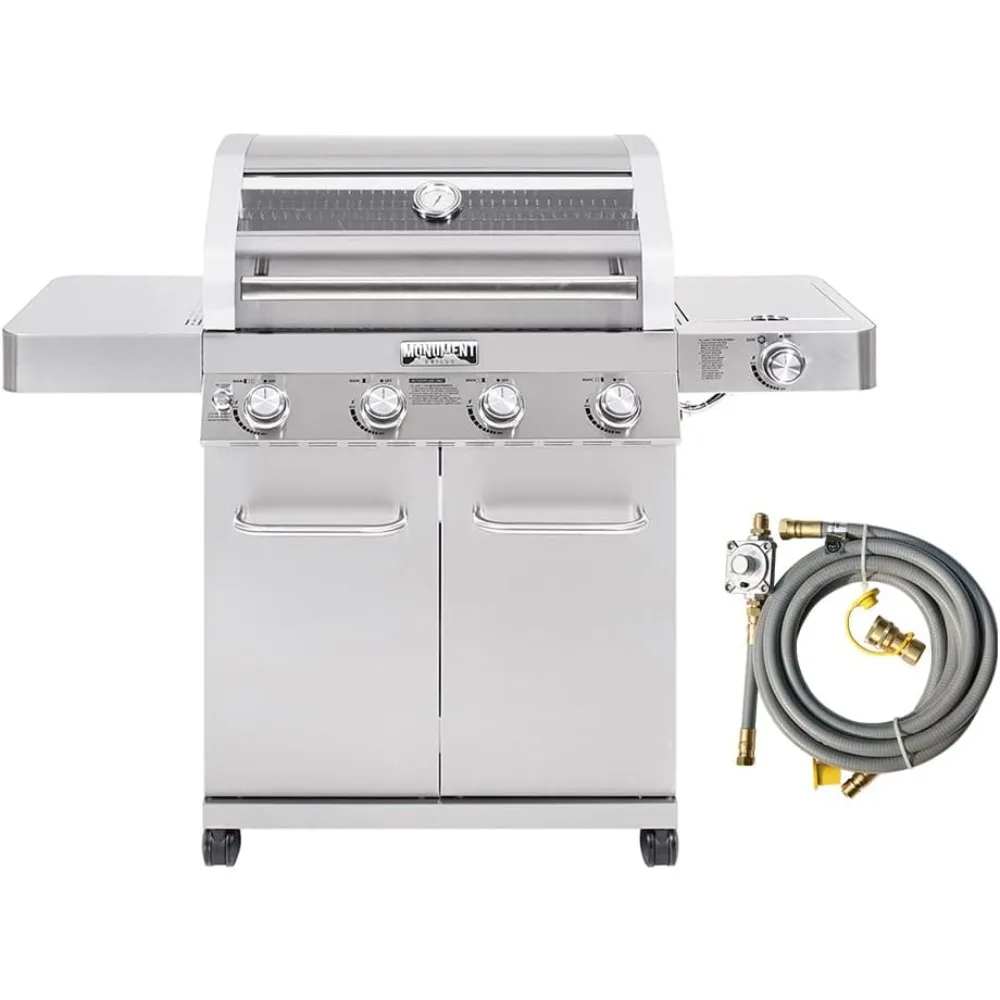 Larger Convertible 4-Burner Natural Gas Grill Stainless Steel Cabinet Style Propane Grills with Conversion Kit(2 Items)