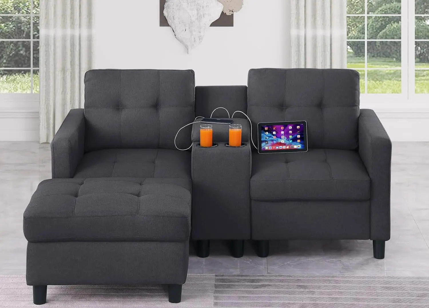 - Mulit funcational Small Sofa: This Loveseat modular couch is perfect for limited compact living spaces like apartment, bedroom, home theater seating with cup holders for enjoy your family / friends time!