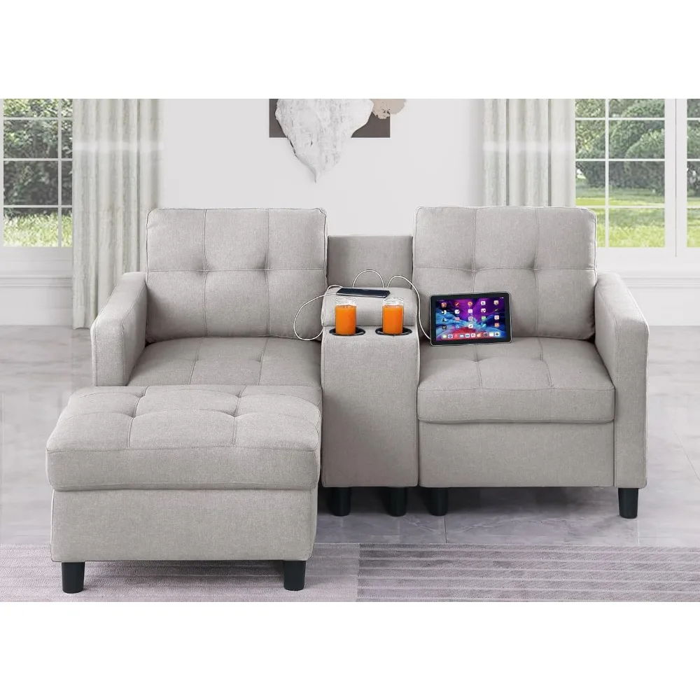 Love Seat Sofa with Ottoman and Storage Console, 2 Seater Couch for Bedroom, Small Modular Sectional Couch Home Theat
