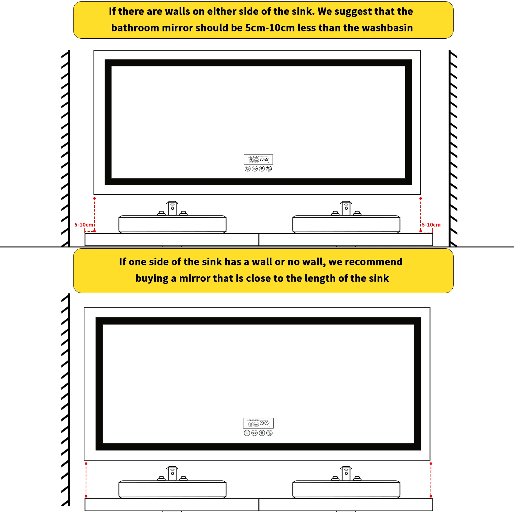 ăProfessional Technology, After-sale ServiceăLUVODI bathroom mirror is constantly upgraded to meet customers expectations, we have our own factory that implement strict quality control measures ensure that each product meets high standards before reaching the customer, engineered with anodized aluminum frame, anti-rust, resistant to wear and damage, two options of installation, powered by a standard plug or hard wire for wall switch control, the mirror has cable entry on the backside, organizes your wire well, welcome to contact customers service to fit your problem, share with your feedback and suggestions.