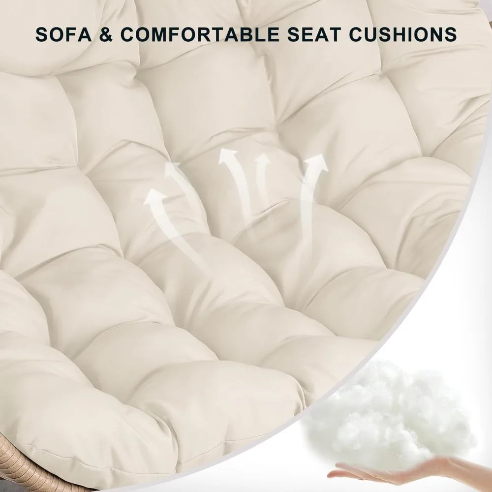 - INDOOR & OUTDOOR:This egg swing chair is designed for both indoor and outdoor use, suitable for gardens, yards, as well as indoors, like living rooms and bedrooms2 cushions are not included,we have cushion please see B0F1XZL5ZY