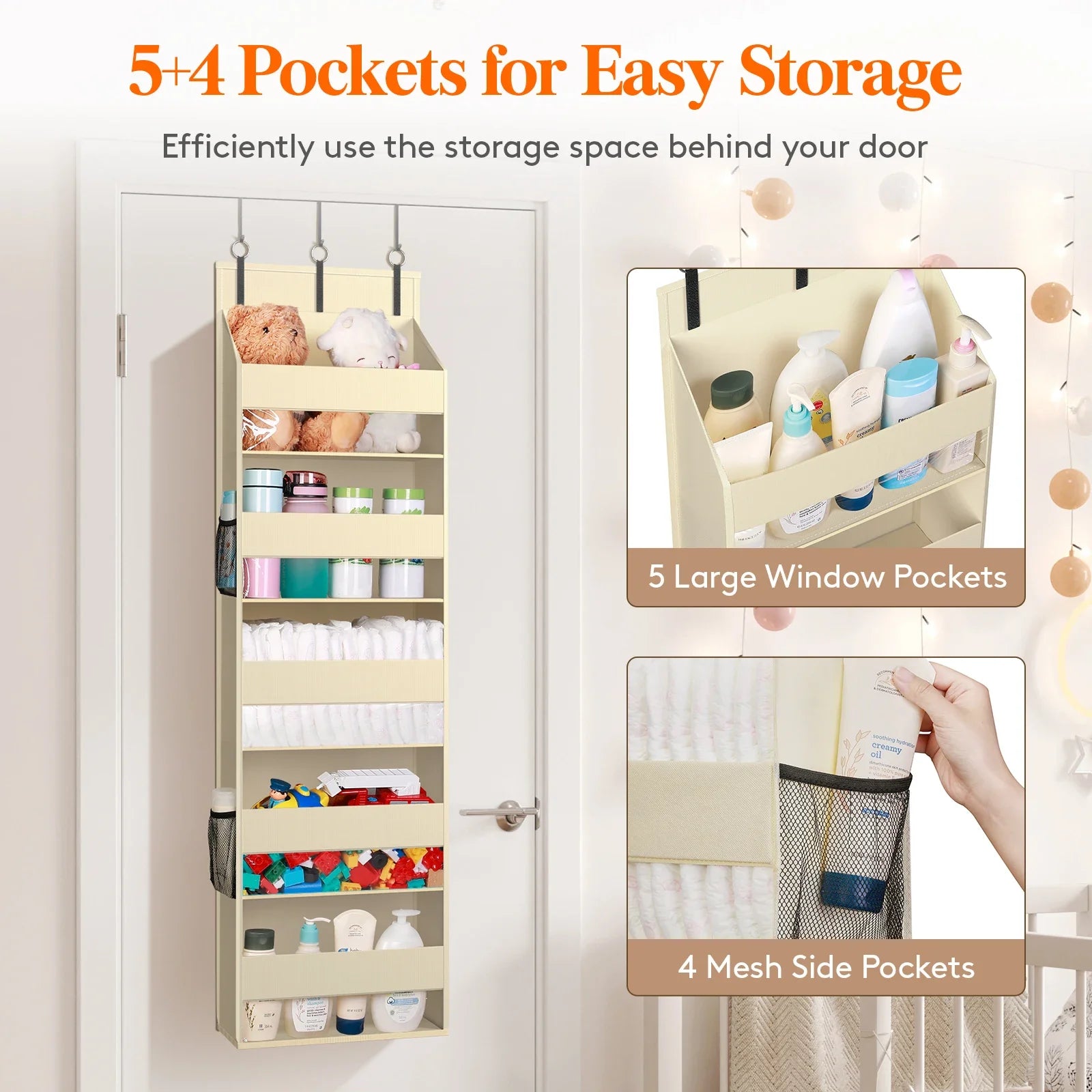 Over the Door Organizer, 5 Shelf Clear Window Hanging Storage with 4 Mesh Side Pockets, Anti Tilt 40 lbs Load Behind Door