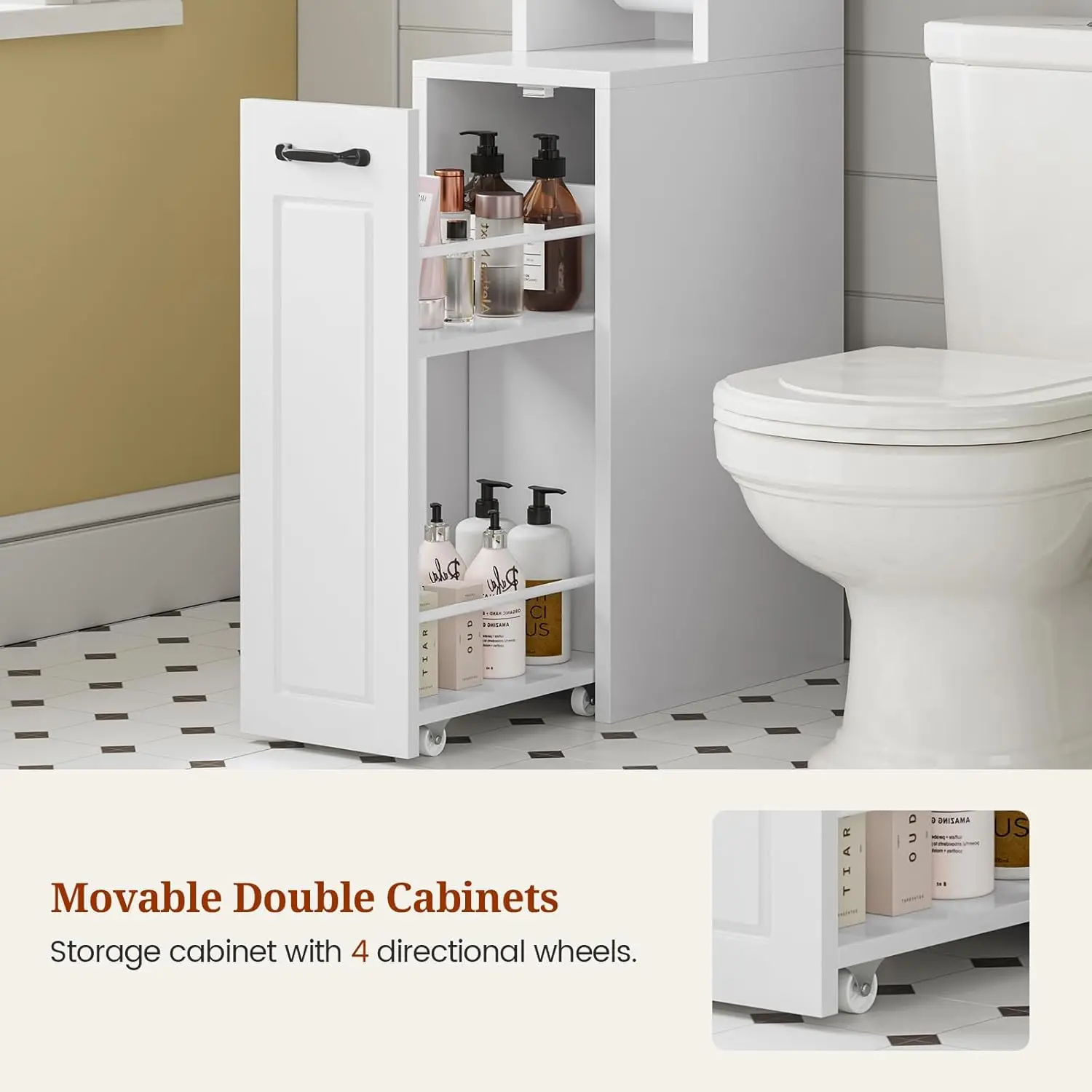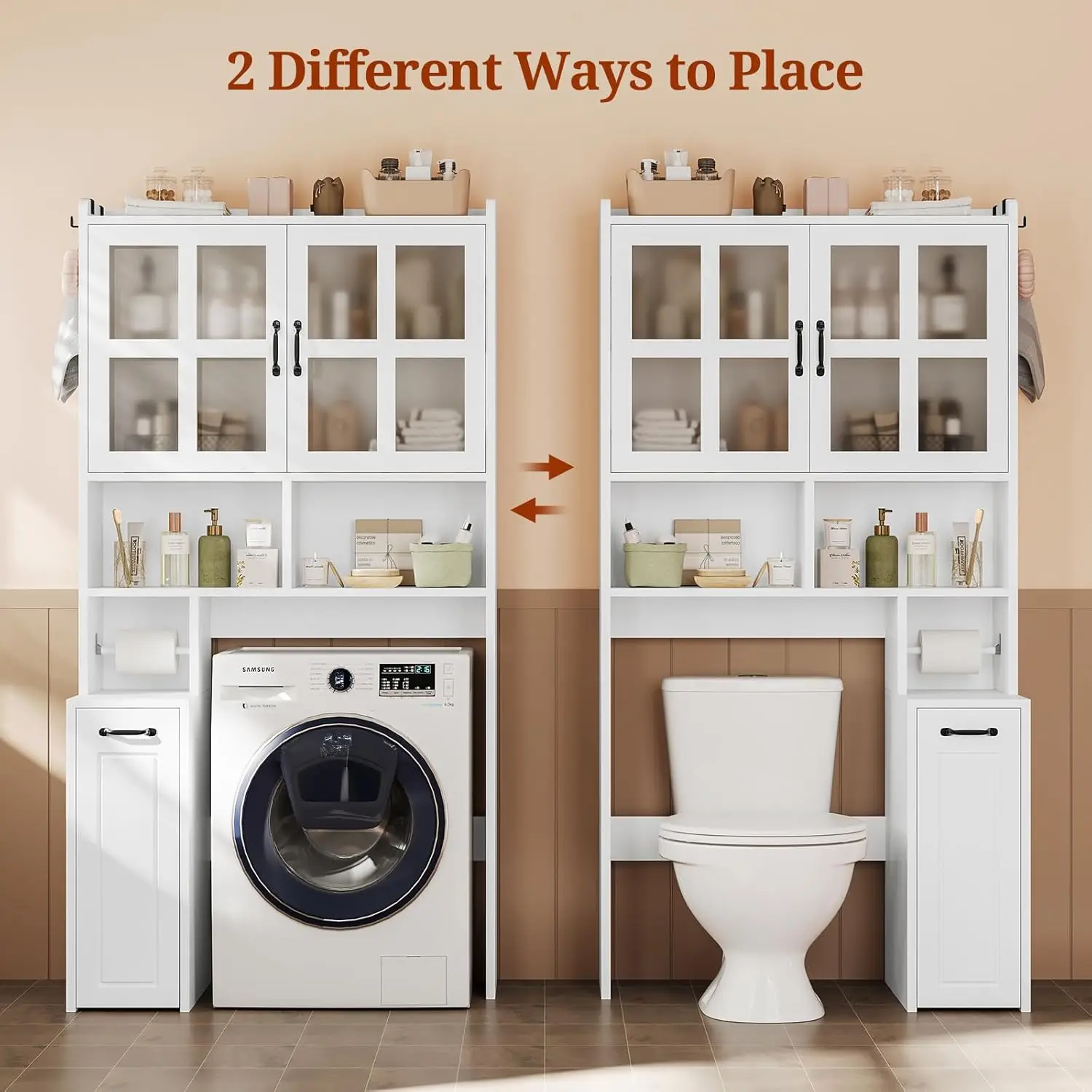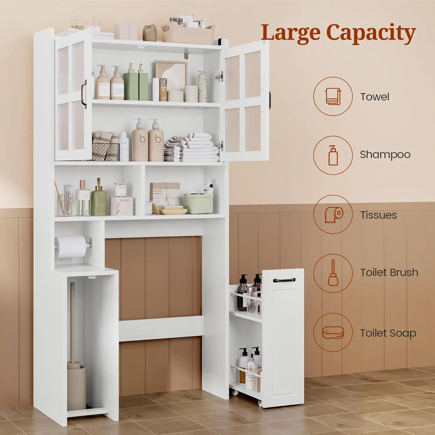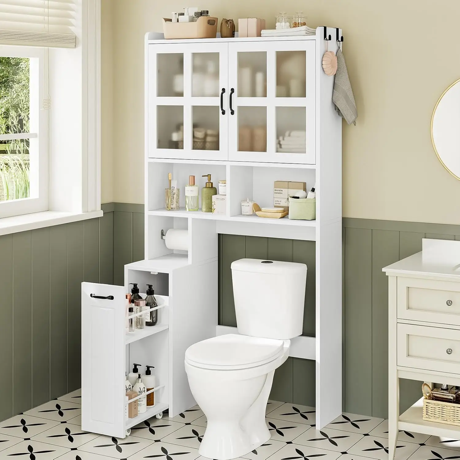 Transform your bathroom organization with this innovative over-the-toilet storage cabinet! Maximize your limited bathroom space while keeping everything neatly organized and within easy reach. **SPACE-SAVING DESIGN WITH SMART FEATURES** This versatile storage solution features a clever pulley system that allows smooth sliding motion, making every item easily accessible. The cabinet includes multiple storage options: one enclosed cabinet section to discreetly store personal items, two open shelves for frequently used products, and a convenient paper towel holder. Built-in casters ensure effortless movement while the lower safety panel prevents accidental dislodging. **PREMIUM CONSTRUCTION & DURABILITY** Crafted from high-quality engineered wood with waterproof coating, this cabinet withstands humid bathroom environments without warping or damage. The reinforced structure features an anti-tip safety device and wall-mounting hooks for complete stability. Tempered glass doors provide clear visibility while protecting contents from moisture and dust. **ADJUSTABLE & CUSTOMIZABLE STORAGE** Customize your storage space with fully adjustable shelves that accommodate items of all sizes - from tall shampoo bottles to small toiletries. The timeless solid color design complements any bathroom decor style, from modern minimalist to traditional aesthetics. **MULTI-PURPOSE USAGE** Perfect not only for bathroom organization above the toilet but also ideal for laundry rooms above washing machines, entryways for storing essentials, or any space where vertical storage is needed. The waterproof construction makes it suitable for various humid environments. **EASY ASSEMBLY & SATISFACTION GUARANTEE** All necessary parts, hardware, and detailed instructions are included in one complete package. Clear assembly guidance ensures quick setup within minutes. Our dedicated customer support team is available to assist with any questions about installation or product use. Upgrade your home organization today with this practical and stylish storage solution that combines functionality with elegant design!