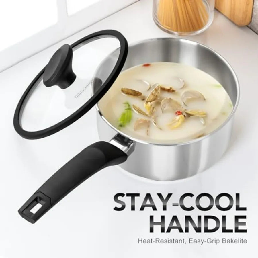 Stainless Steel Saucepan with Lid 1QT & 2QT & 3QT, Triply Stainless Steel Saucepans with Bakelite Handle, Premium Nonstick Sauce