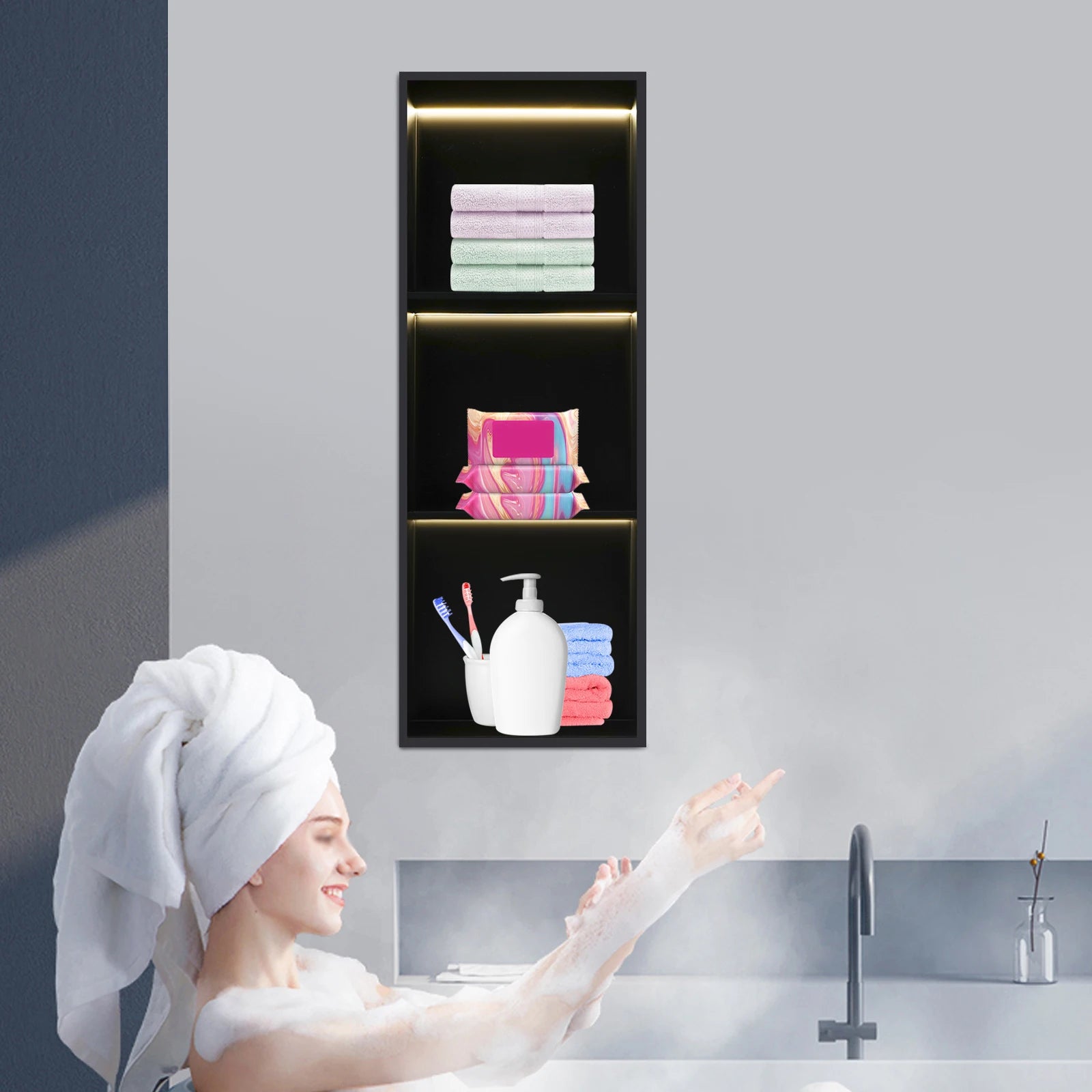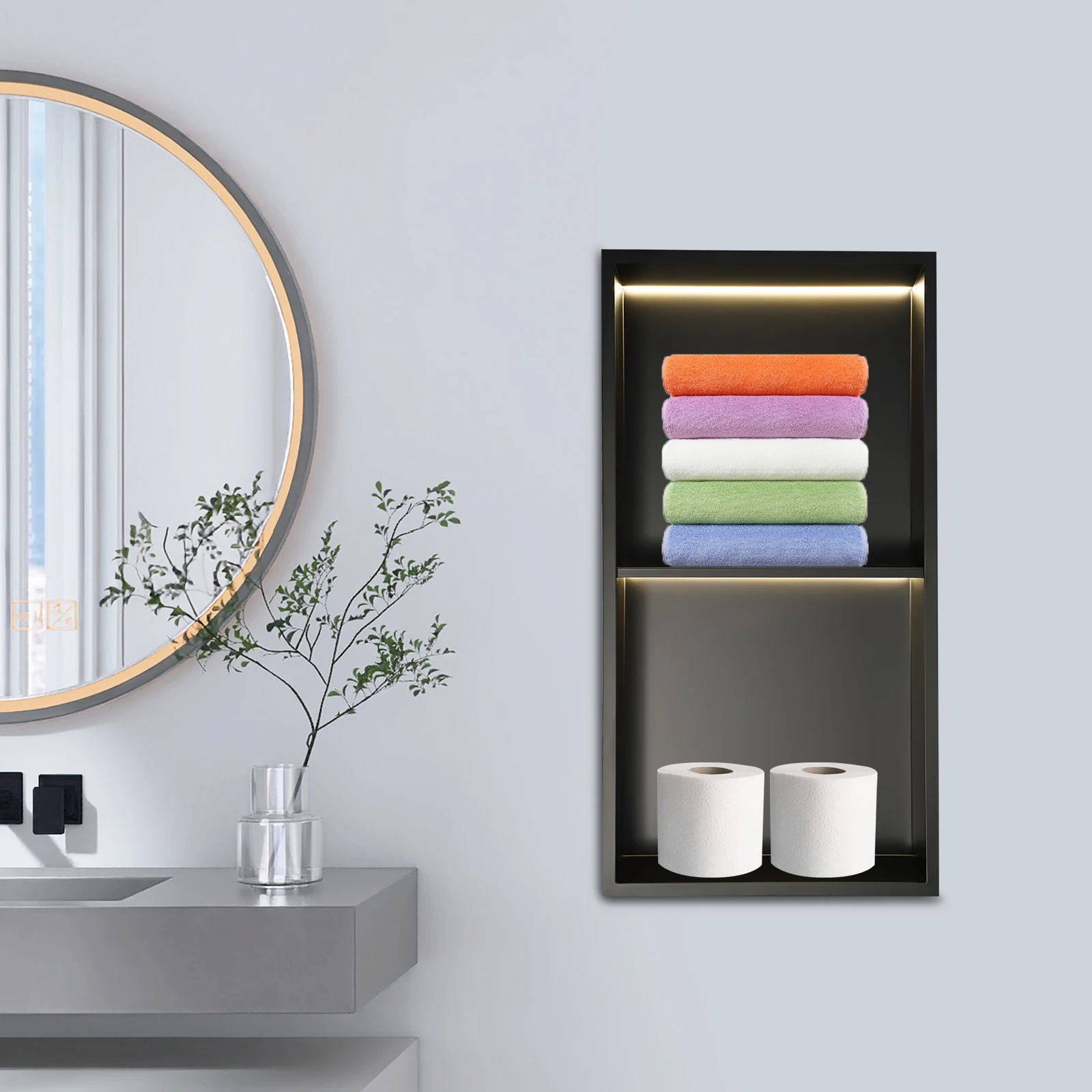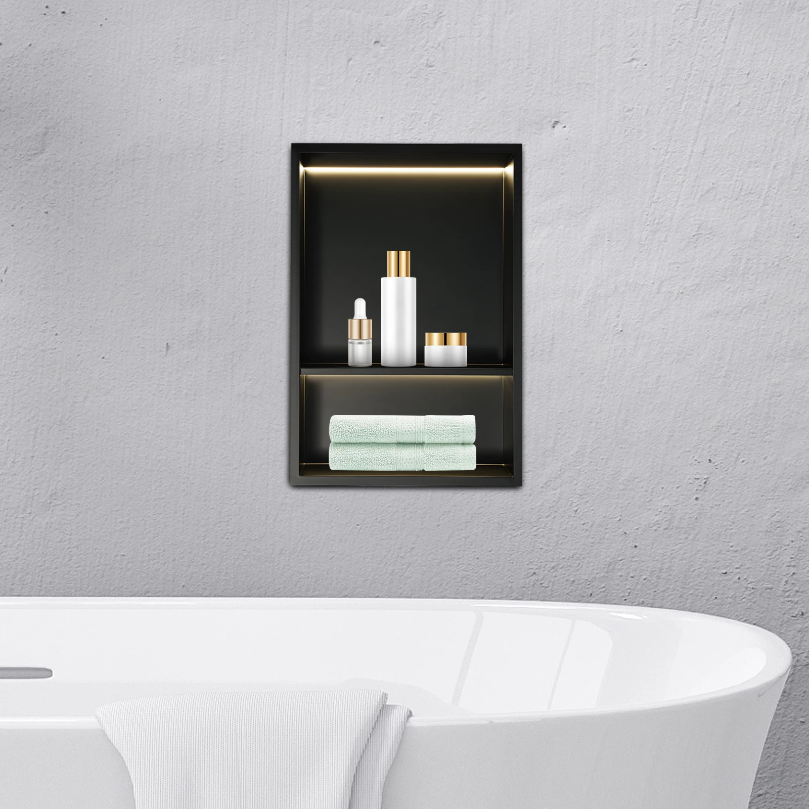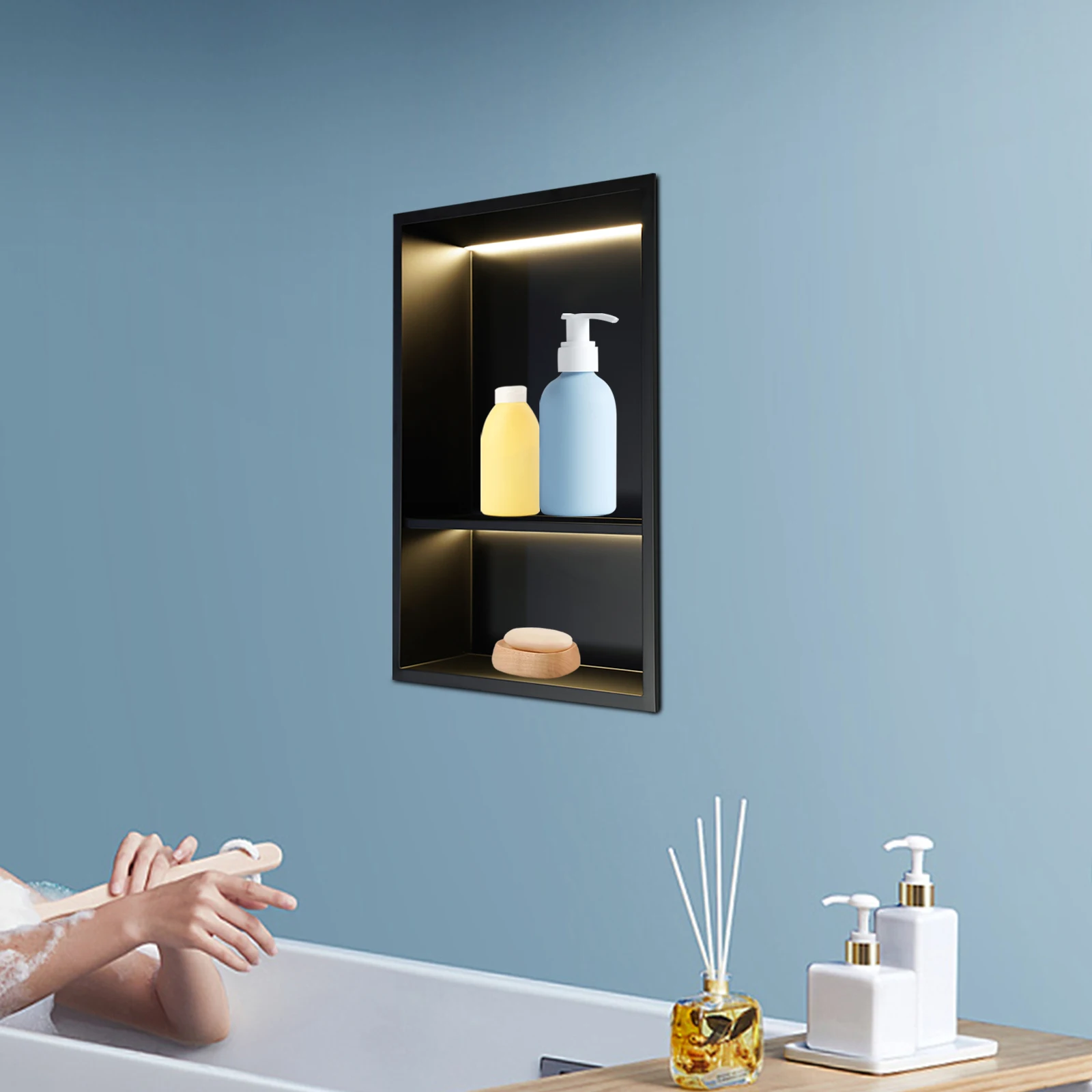 Stainless Steel Shower Niche Bathroom Wall Niche 2/3-Tier Wall Niche with LED Light