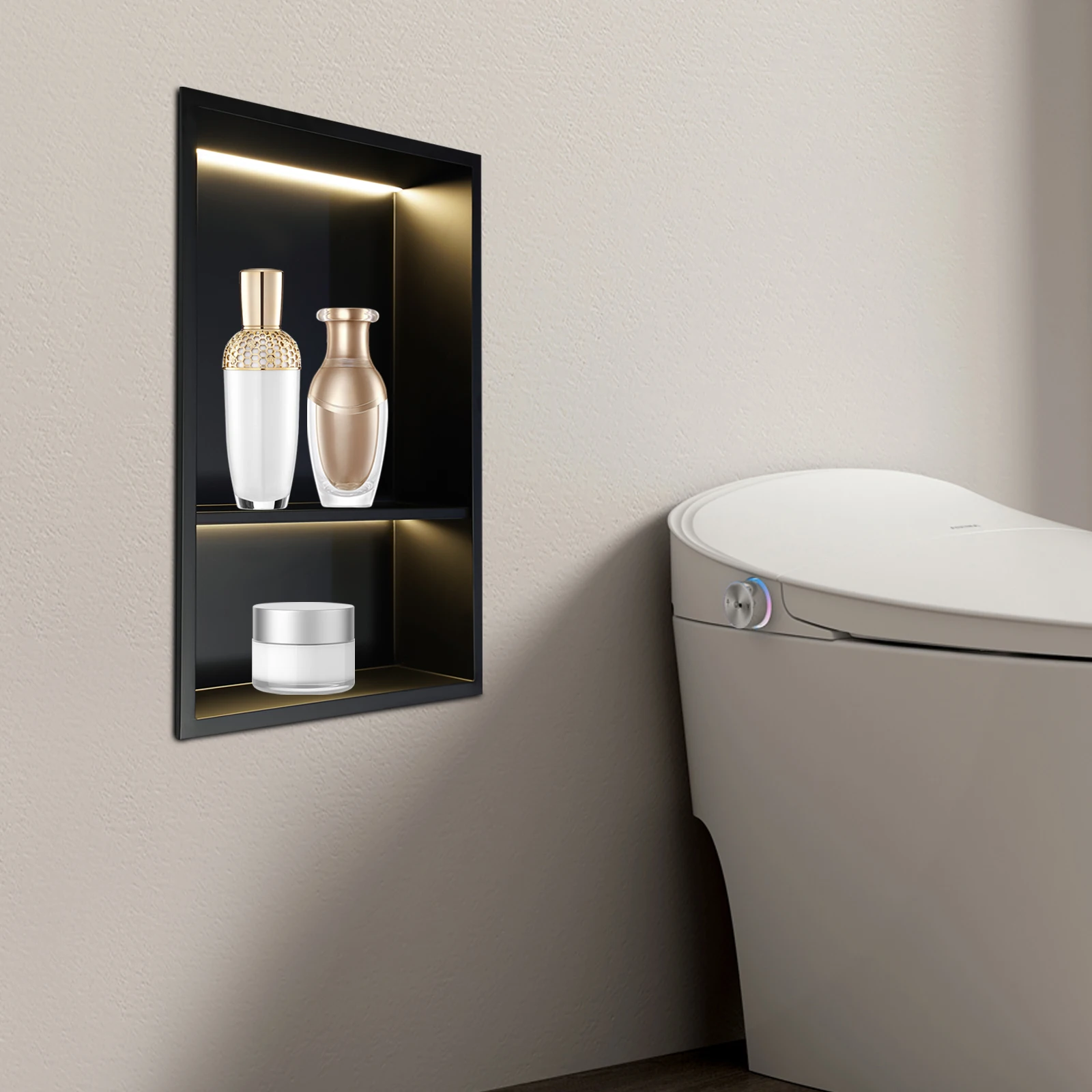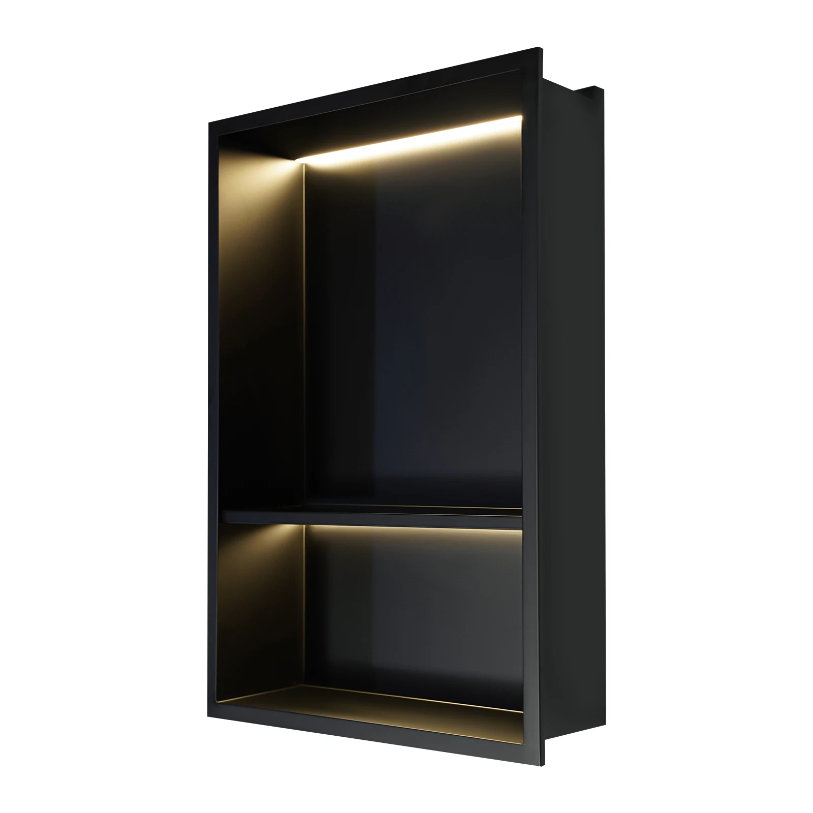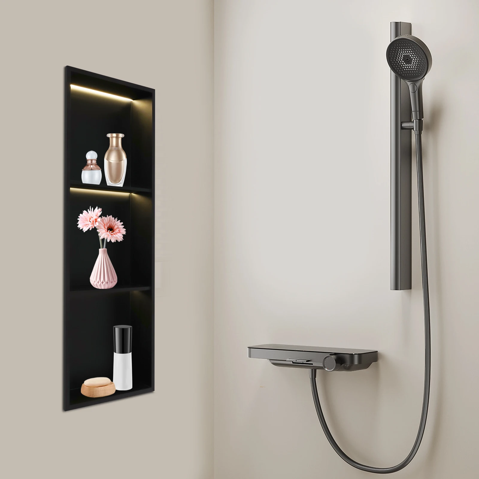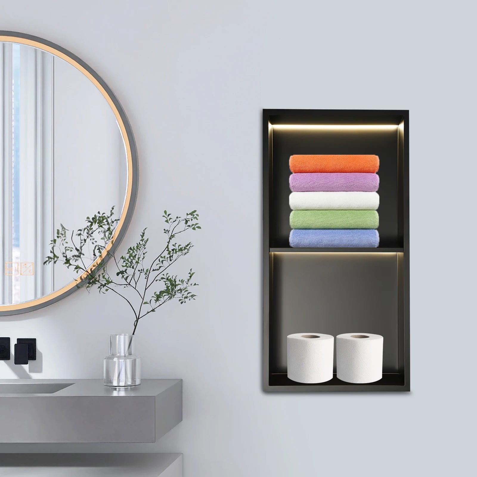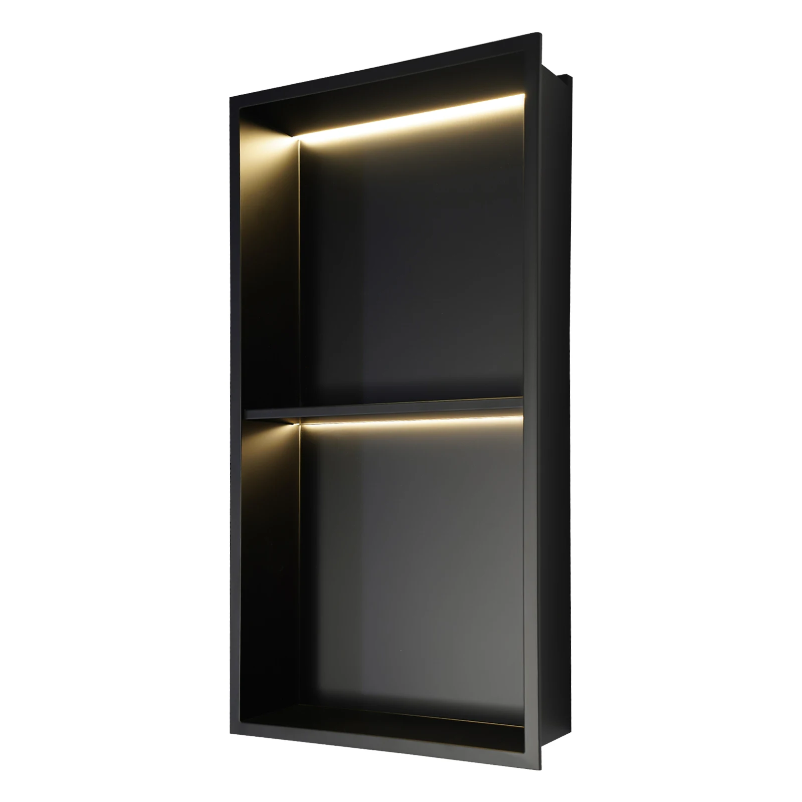 Stainless Steel Shower Niche Bathroom Wall Niche 2/3-Tier Wall Niche with LED Light