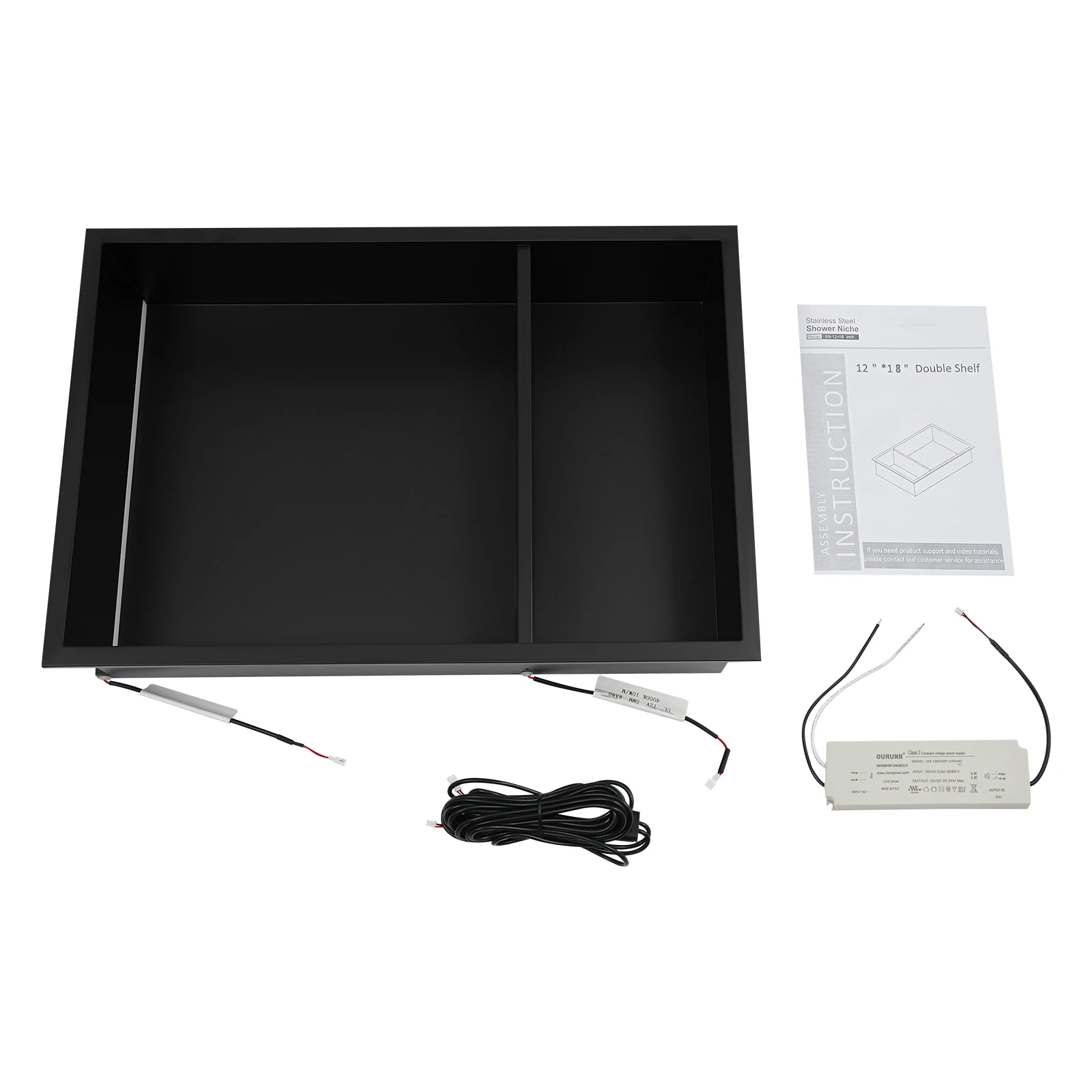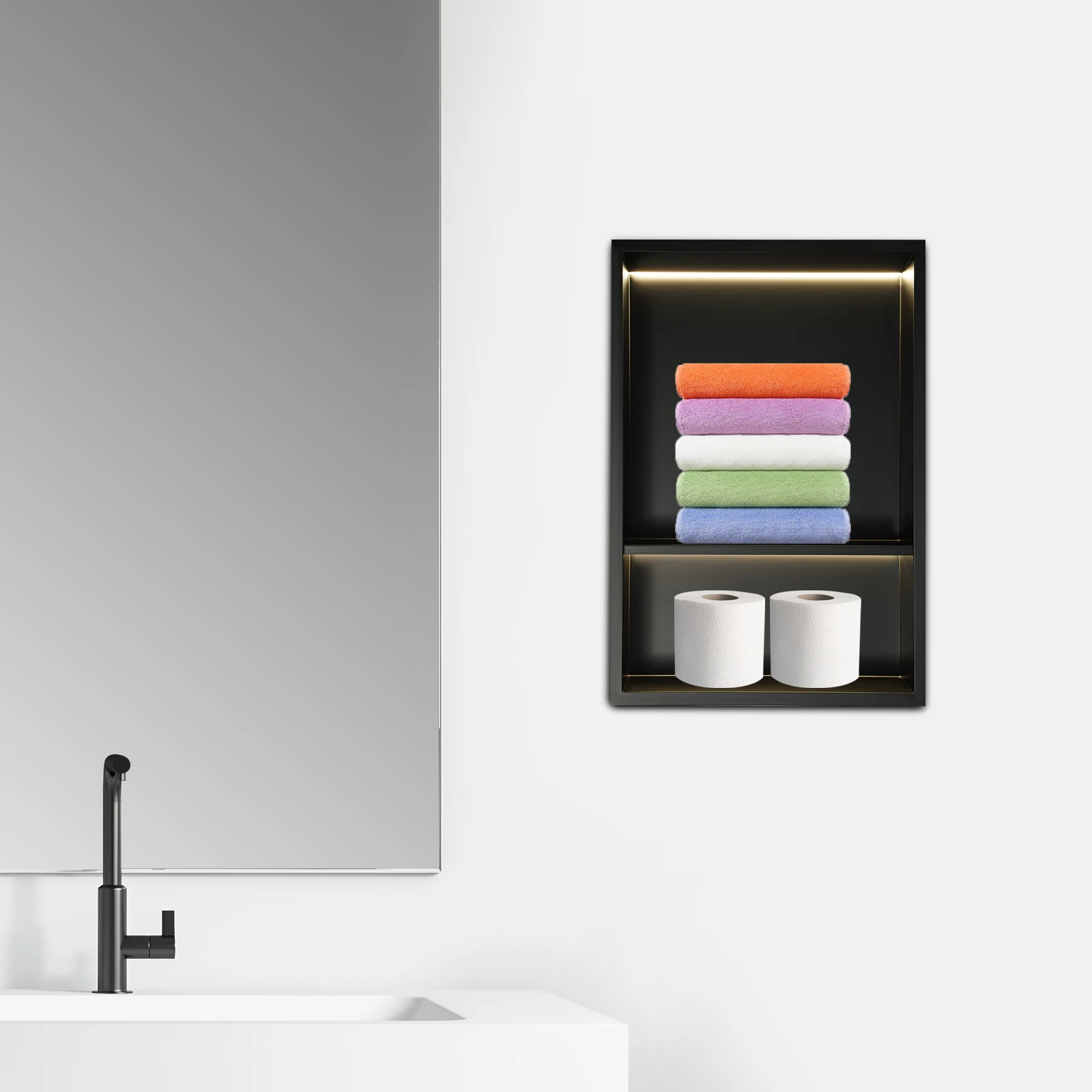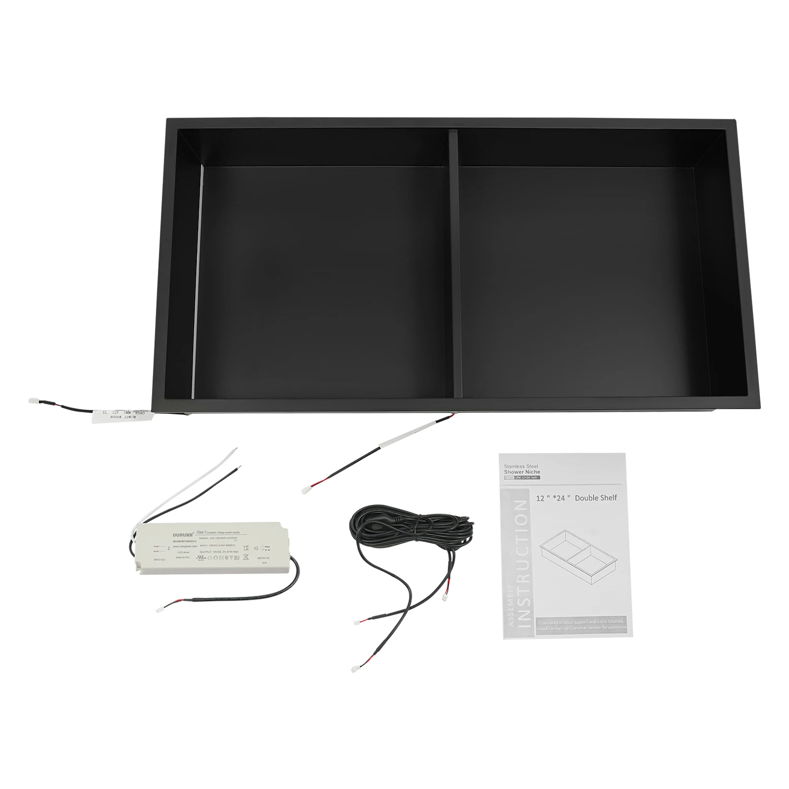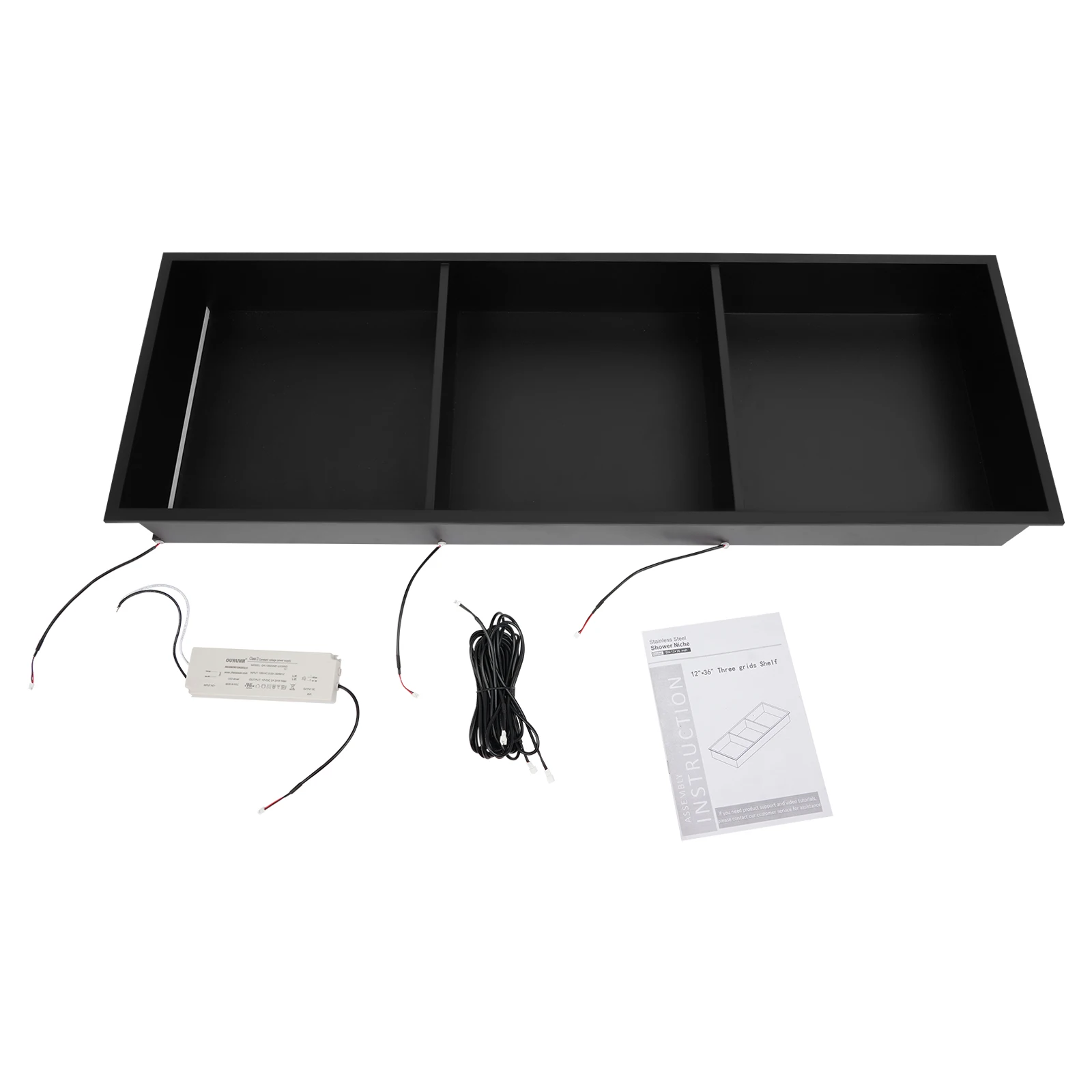 Stainless Steel Shower Niche Bathroom Wall Niche 2/3-Tier Wall Niche with LED Light