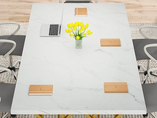 【Versatile White Work Desk】 - With a 70 inch width, this simple desk provides ample space for multiple functions such as an executive table, writing desk, computer desk, study table, conference table, and even a dining table for 6-8 people. The desk top is composed of four pieces.