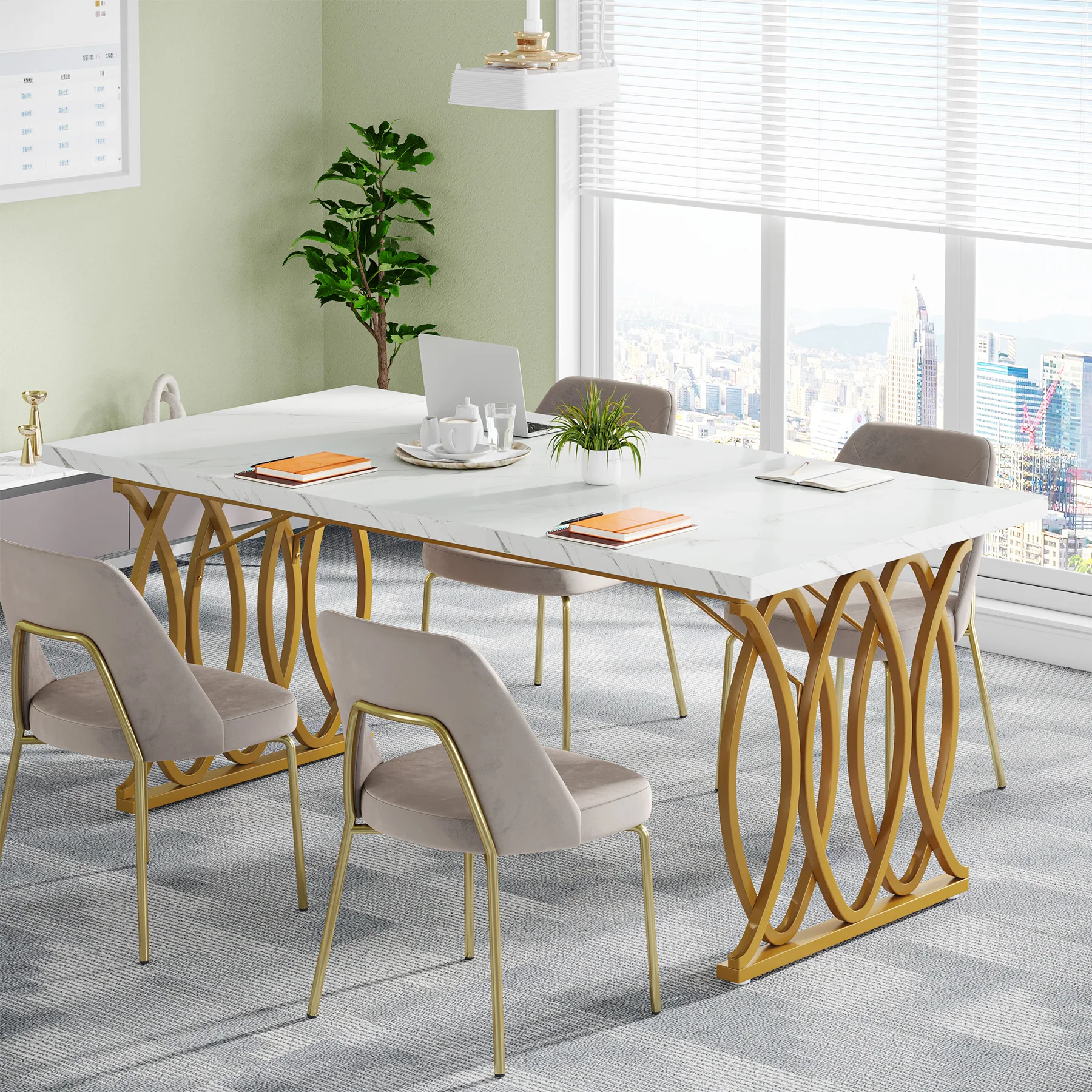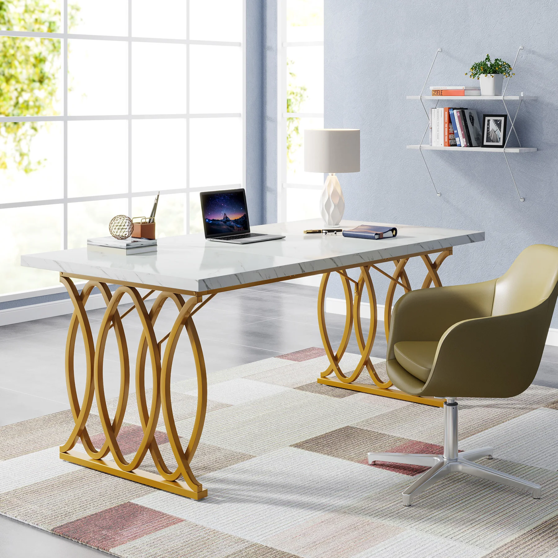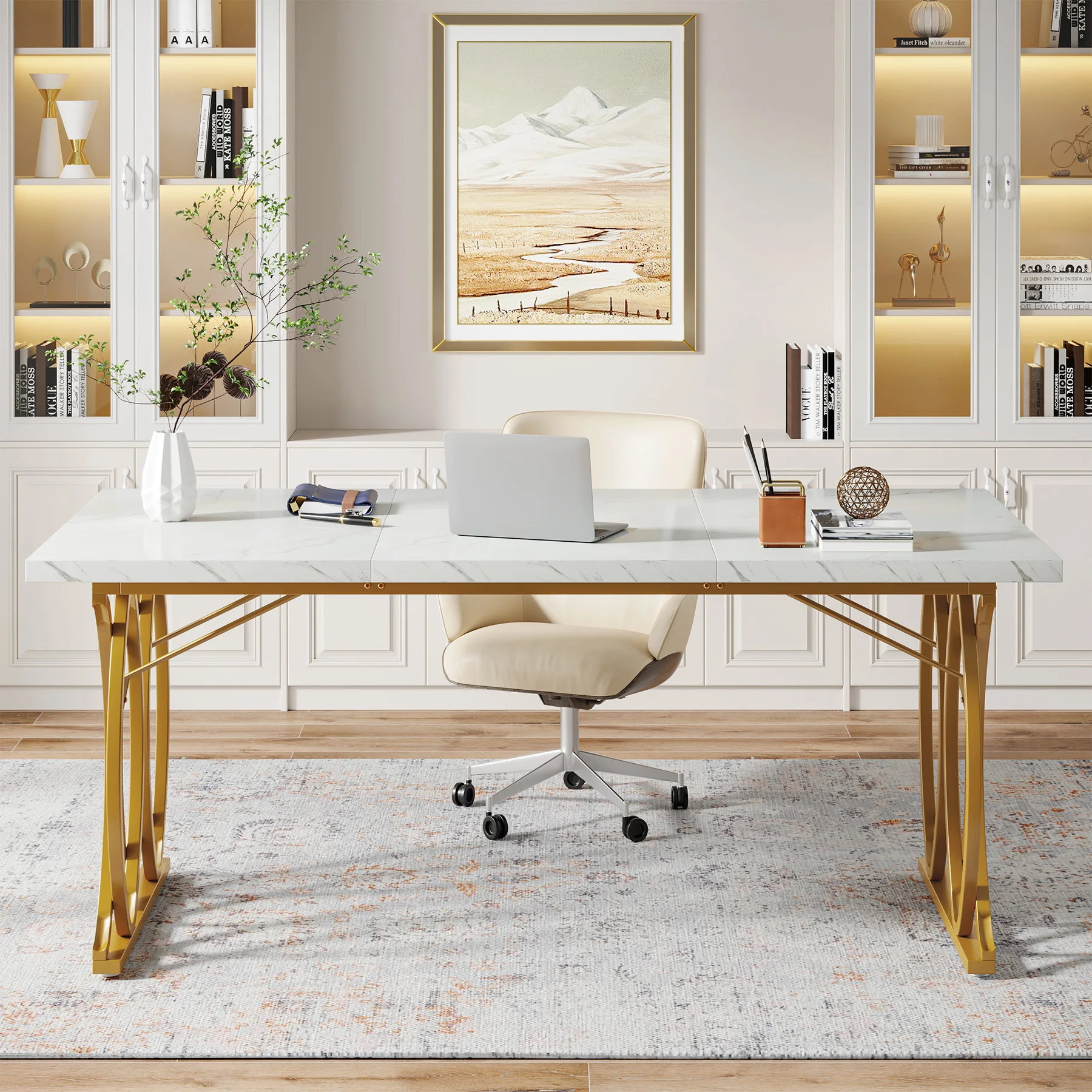Tribesigns Modern Office Desk, 70.9" Wooden Computer Desk,Executive Desk with Gold Metal Legs, Large Workstation Home Office